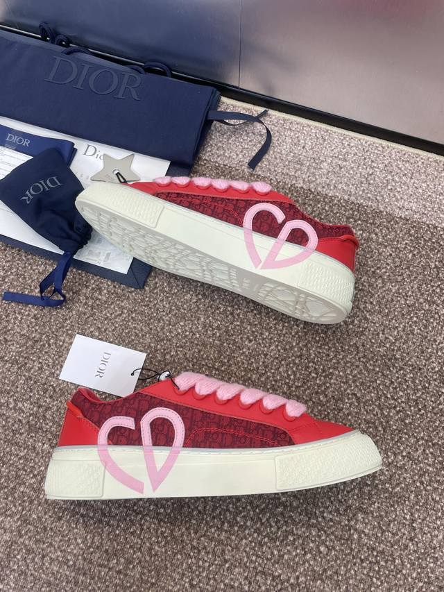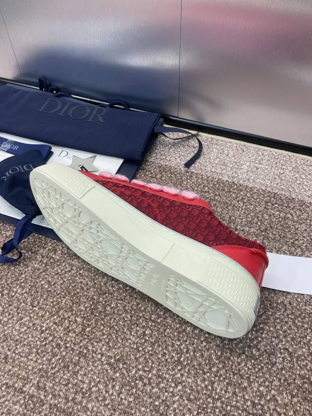 迪奥 2024秋冬高定系列新款 Cd 果冻色情侣款平底休闲鞋 Dior X Travis B33联名款圆头系带帆布滑板鞋 明星同款oblique字母logo刺绣复古拼色运动鞋 市面顶级高端版本
