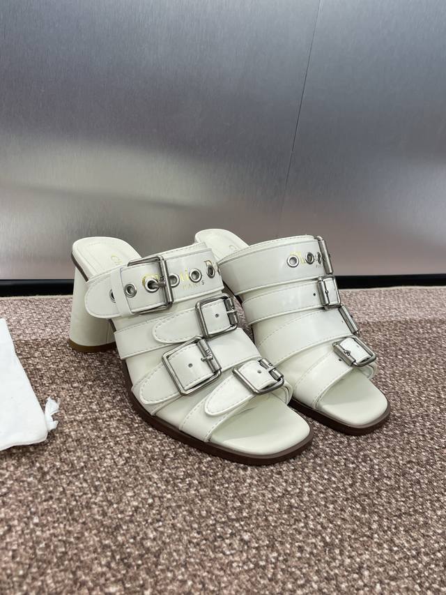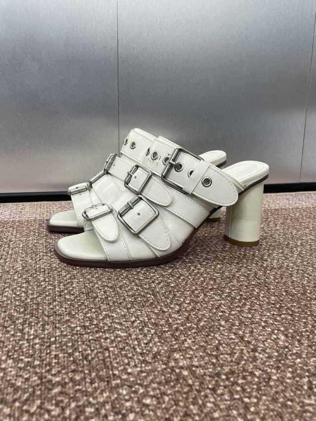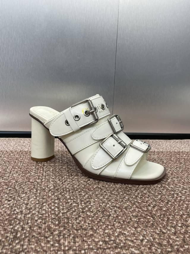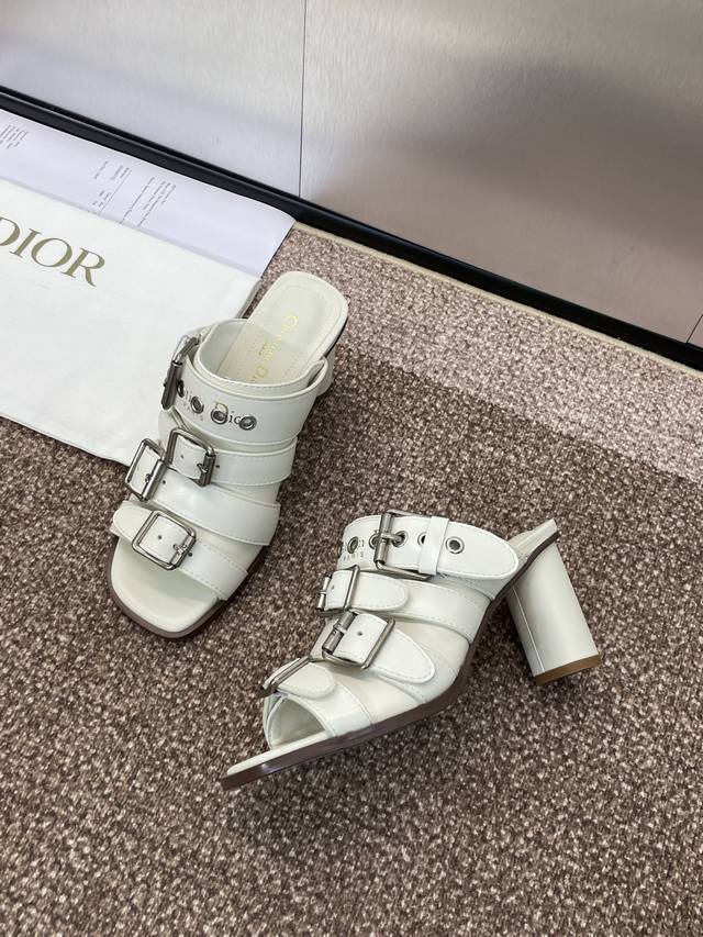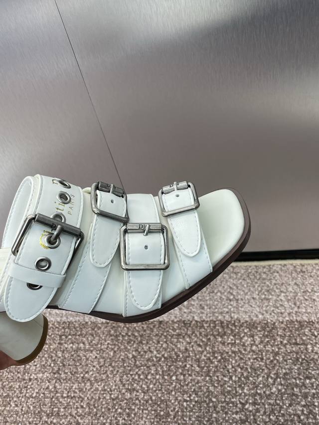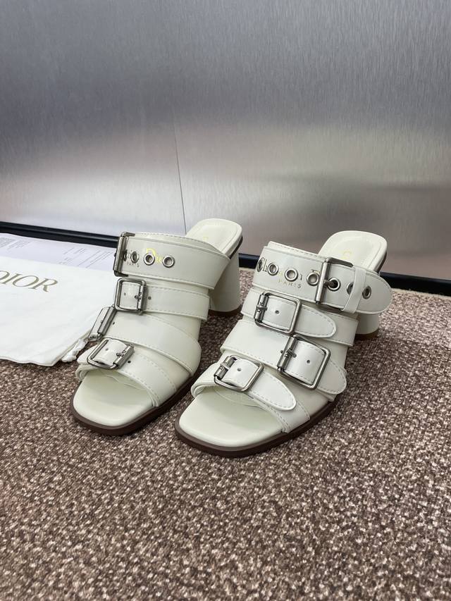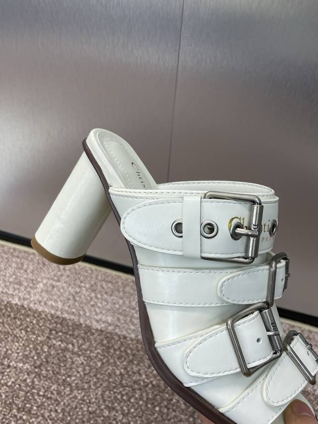 迪奥 Dior 2025春夏新款d-Avenue系列高跟拼色罗马风凉拖鞋 Cd字母logo五金扣明星同款朋克风格粗跟皮带扣鱼嘴露趾女鞋