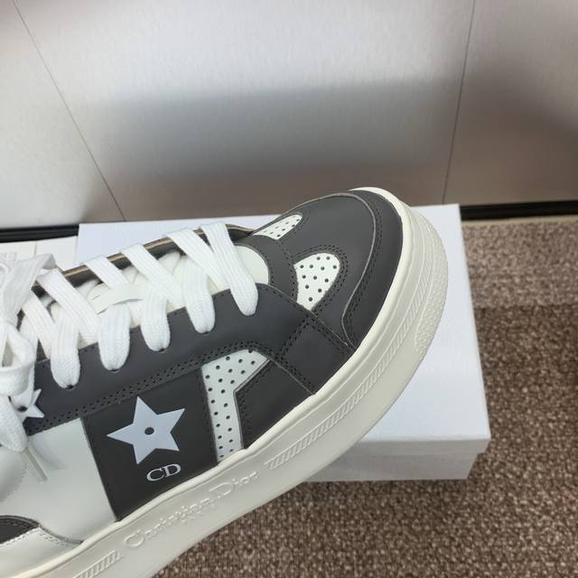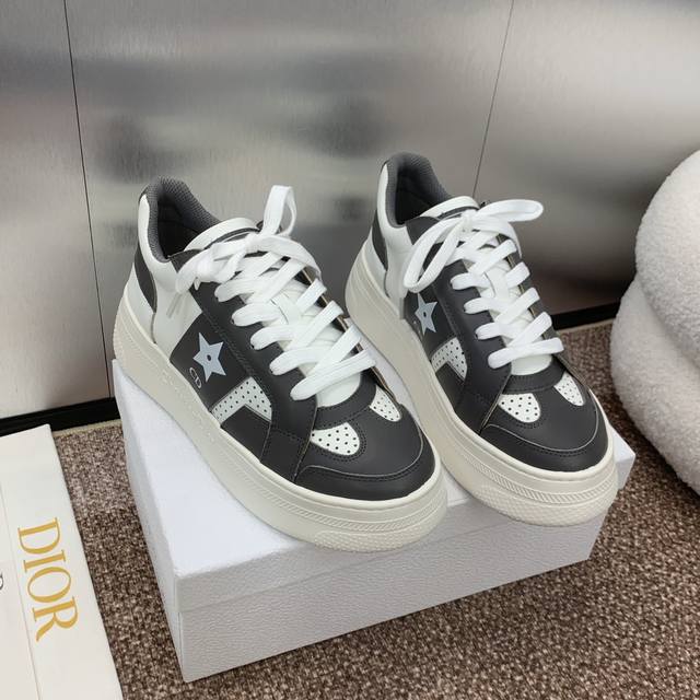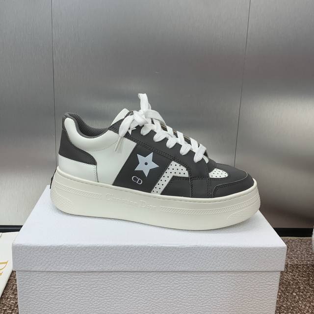 迪奥 Dior 春夏最新款star休闲系带星星小白鞋 Cd字母logo小蜜蜂拼色运动鞋 明星同款厚底圆头糖果色滑板鞋
