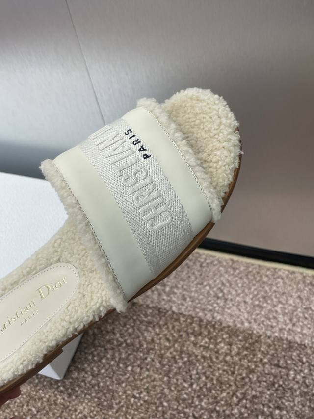 迪奥 Dior 2024 春夏新款 Dway 平底一字拖拼色女鞋 Cd字母logo立体刺绣方头露趾羊羔毛居家拖鞋