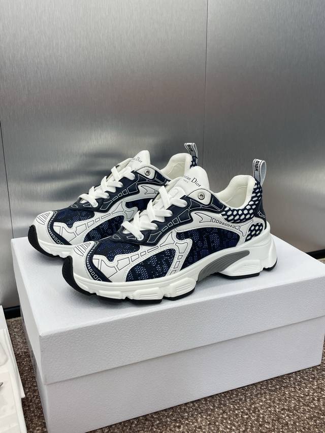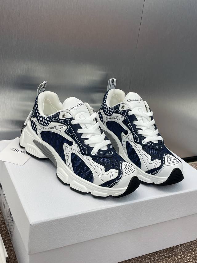 Dior 迪奥2024春夏走秀新款 Chrono 标志性时尚摩登运动老爹鞋 Cd字母logo系带拼色厚底跑鞋 明星同款果冻色休闲女鞋 市面顶级高端版本