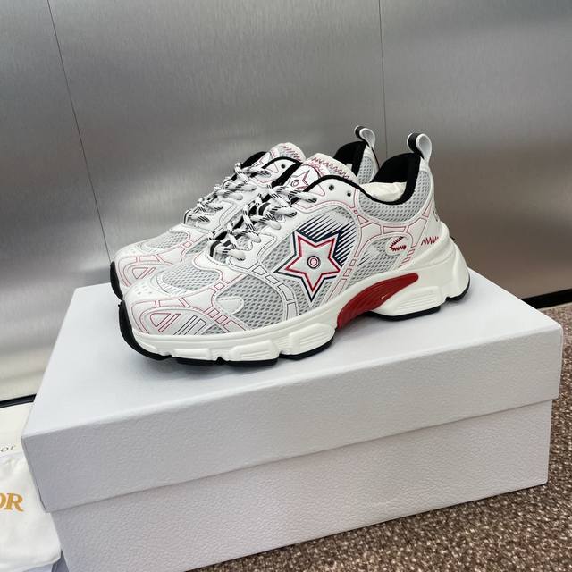 Dior 迪奥2024春夏走秀新款 Chrono 标志性时尚摩登运动老爹鞋 Cd字母logo系带拼色厚底跑鞋 明星同款果冻色休闲女鞋 市面顶级高端版本