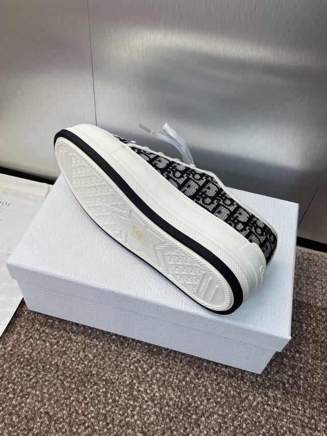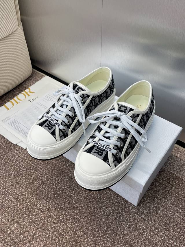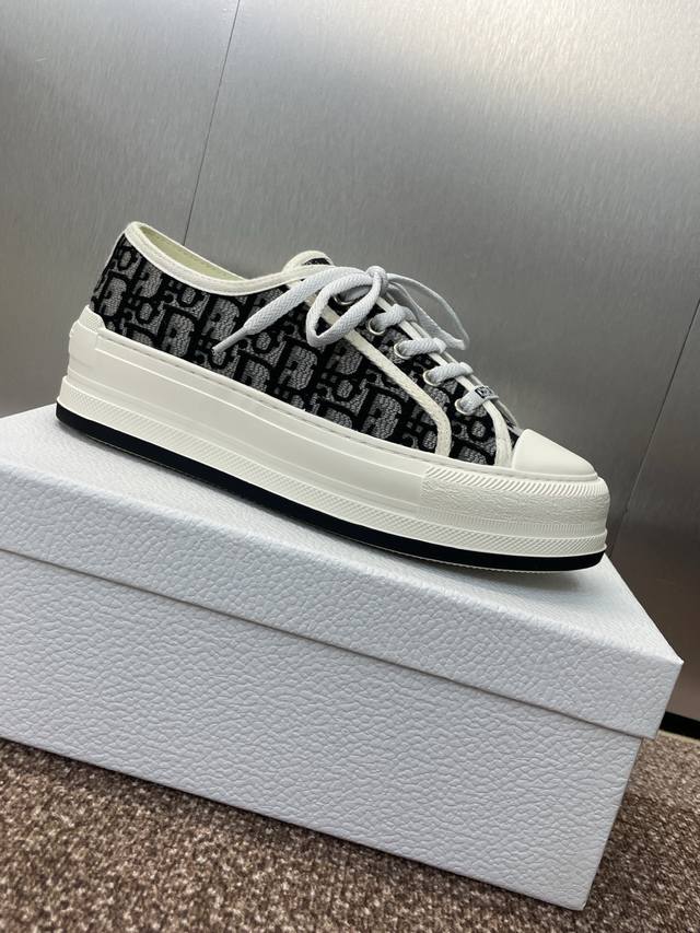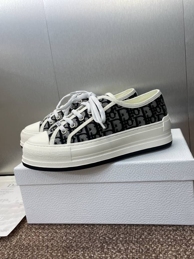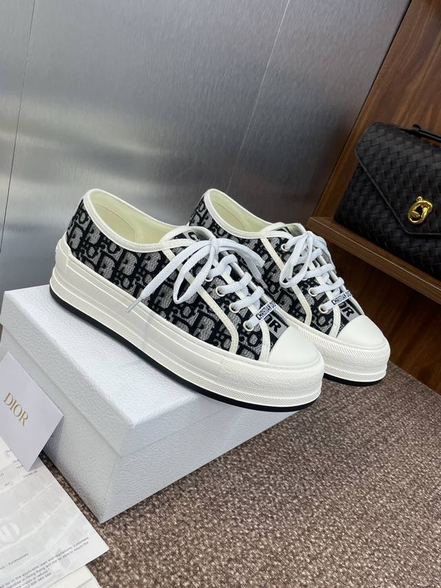 Dior 迪奥2025早春最新情侣款厚底绑带低帮休闲鞋 Walk’N Dior Oblique 暗花字母Logo提花刺绣图案拼色帆布运动小白鞋 市面最高版本