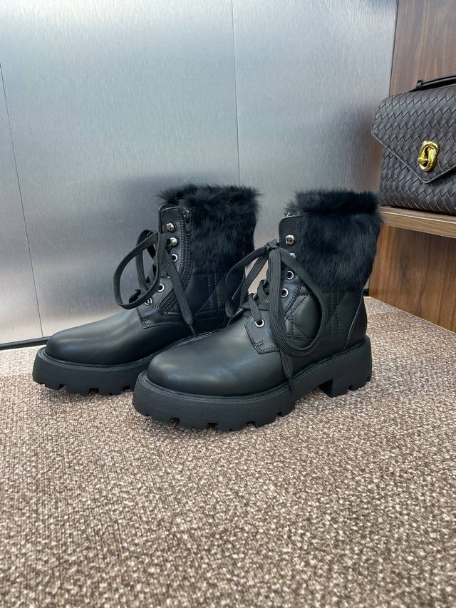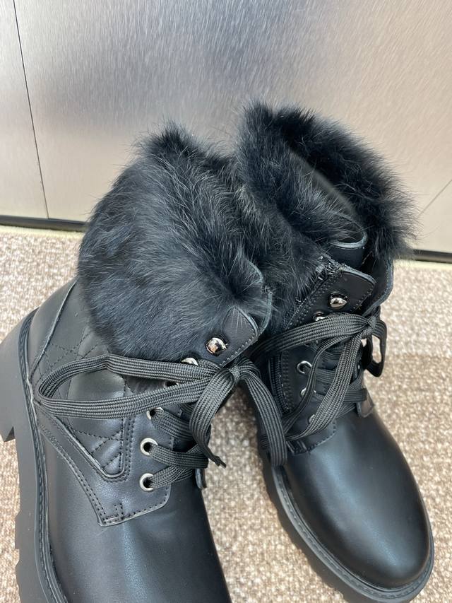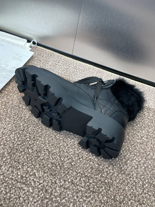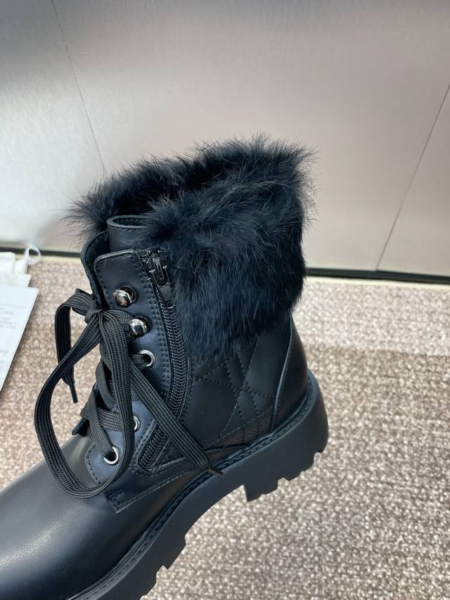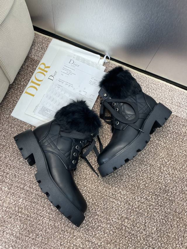 Dior 迪奥2025秋冬新款D-Majo羊毛藤格纹电绣女短靴 明星同款Cd字母Logo系带机车靴 低跟厚底圆头系带骑士靴