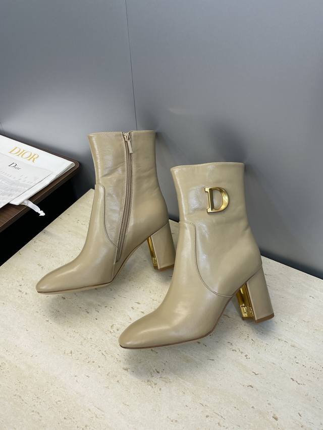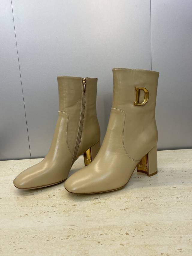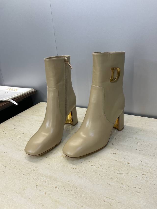 迪奥 Dior 2025秋冬新款C’Est高定系列粗跟圆头骑士女短靴 明星同款Cd字母Logo五金扣侧拉链机车马丁及裸靴
