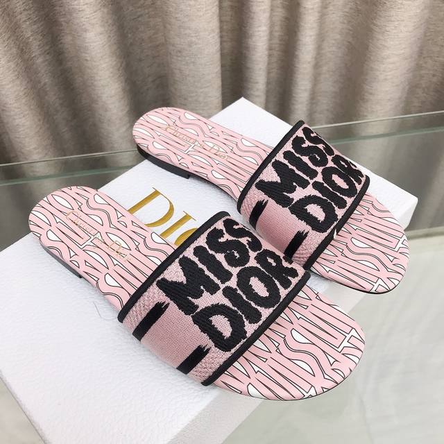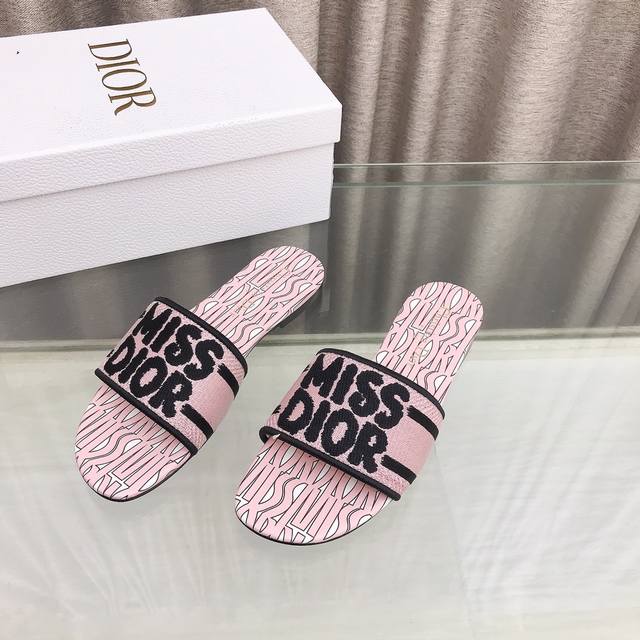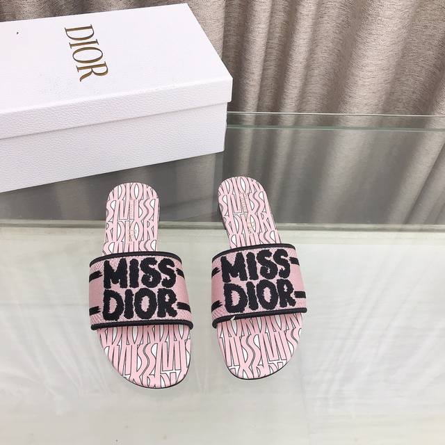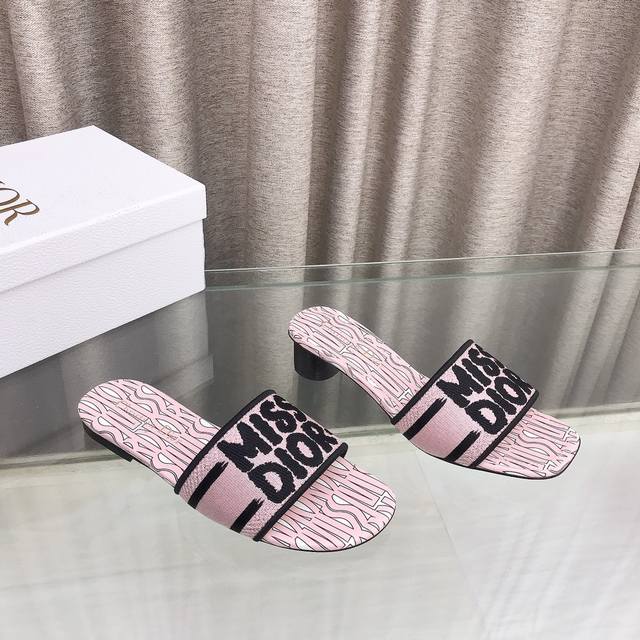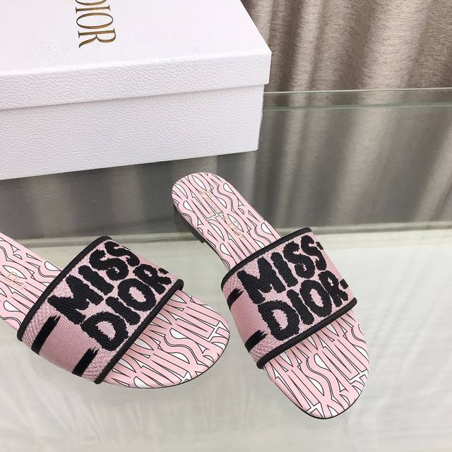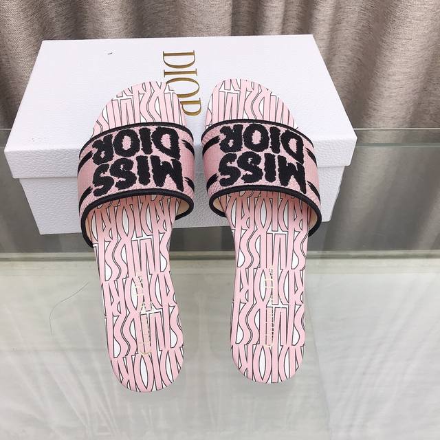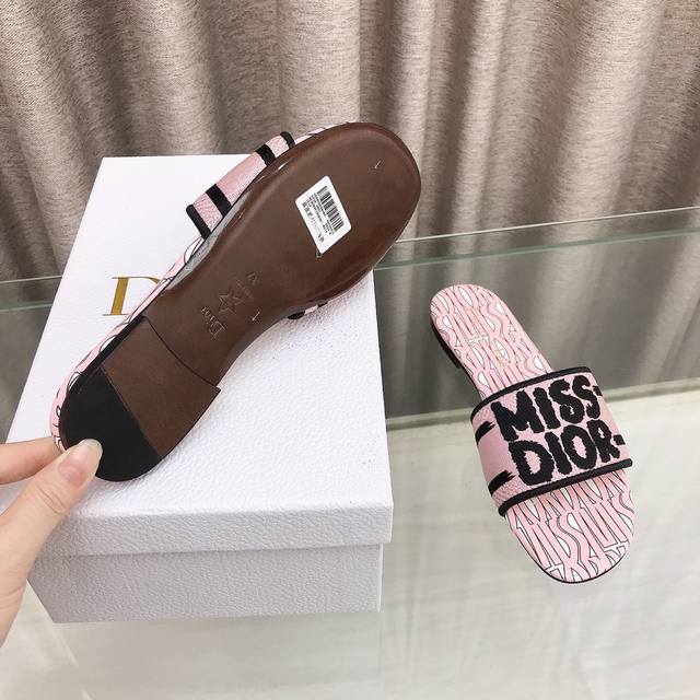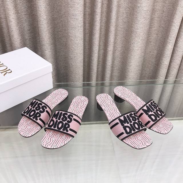 迪奥 Dior 新元素miss Dior 春夏新款一字拖拼色女鞋 Cd字母logo立体刺绣圆柱跟凉鞋 方头粗跟果冻色露趾拖鞋 市面顶级版本