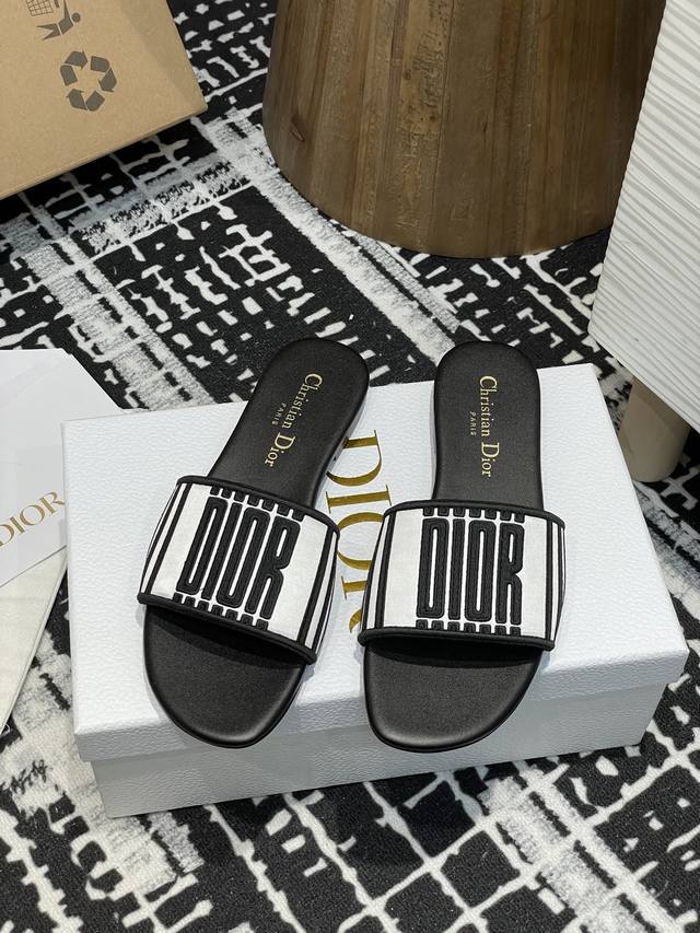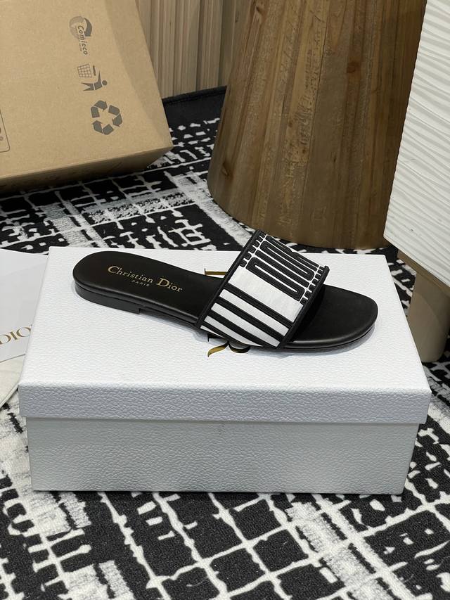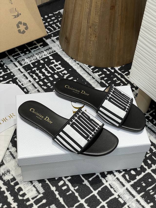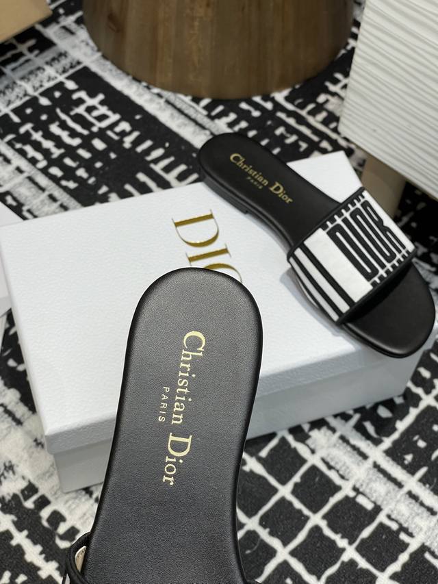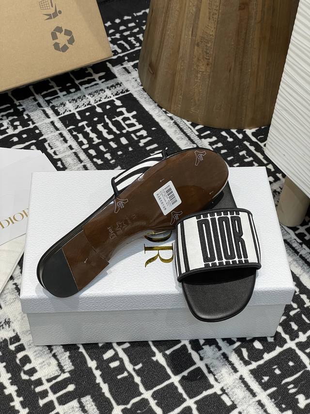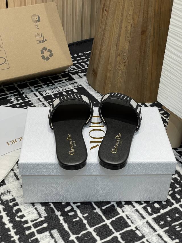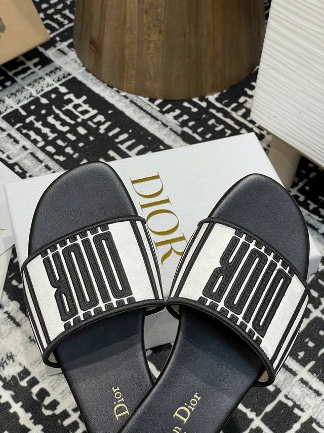 25Ss夏季新款Dior Dway 粗跟电绣一字凉拖鞋2025最新配色