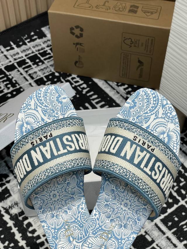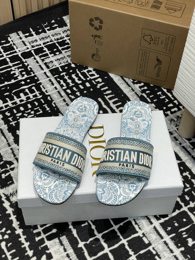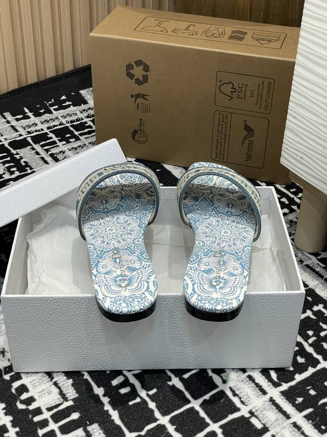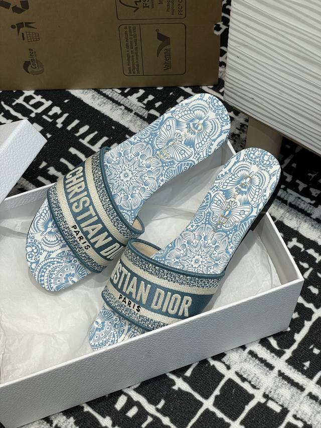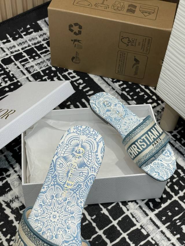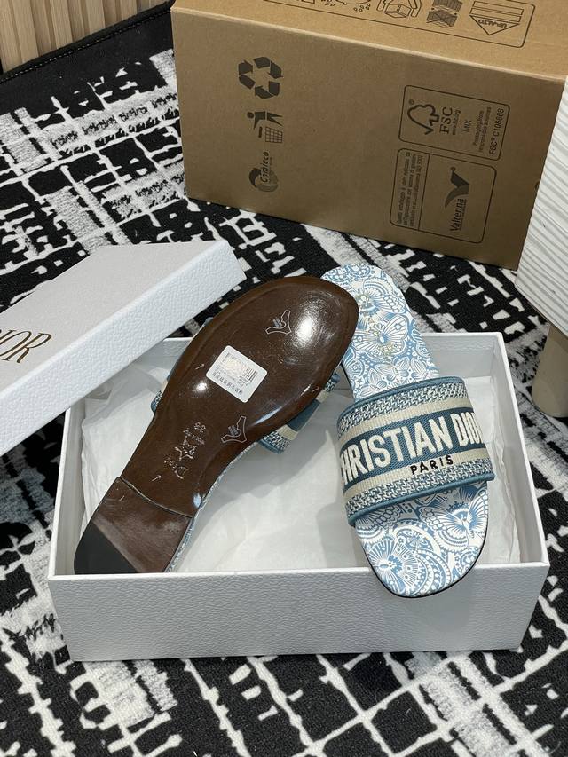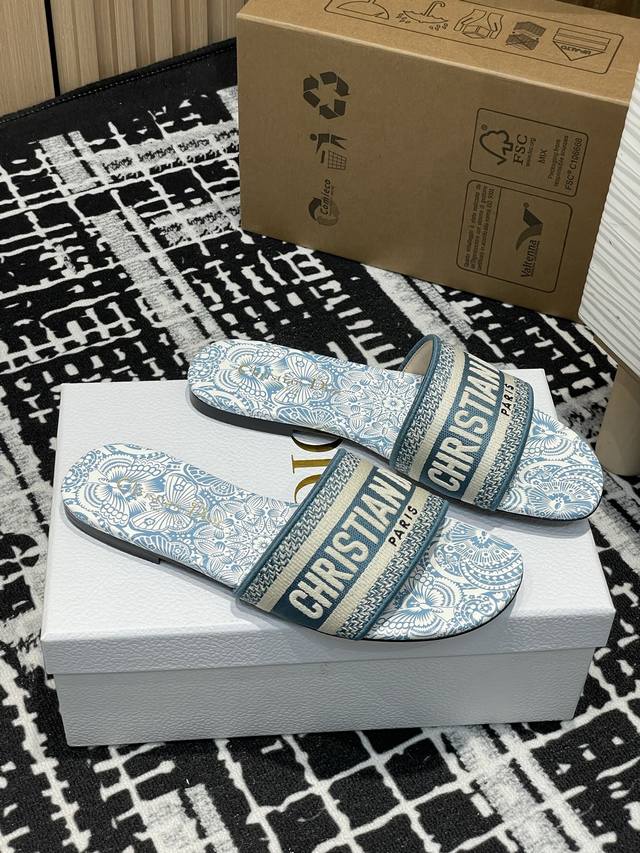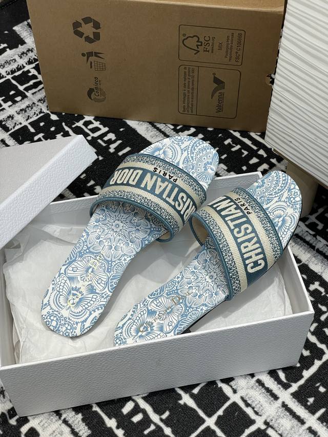25Ss夏季新款Dior Dway粗跟电绣一字凉拖鞋2025最新配色
