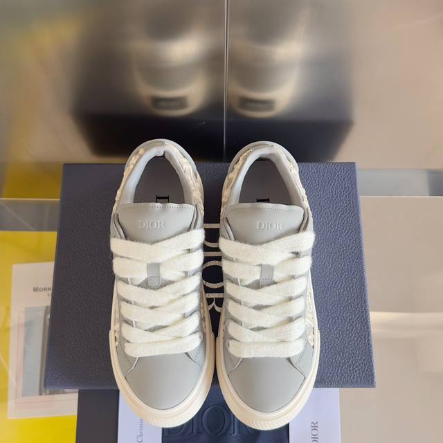 原版购入开发 做货 这款 B33 运动鞋是二零二三秋季新品,重新诠释经典的网球鞋,时尚的廓形突显厚实感。采用海军蓝色和白色提花面料精心制作,饰以 Oblique 印花,搭配绒面革镶片,别具一格的加垫鞋舌点缀以 Dior 压花标志,搭配海军蓝色马海毛宽鞋带和哑光同色调饰面黄铜孔眼。白色 Dior Oblique 图案橡胶鞋底,后侧饰以对比鲜明的 Dior 30 Avenue Montaigne 标志提升