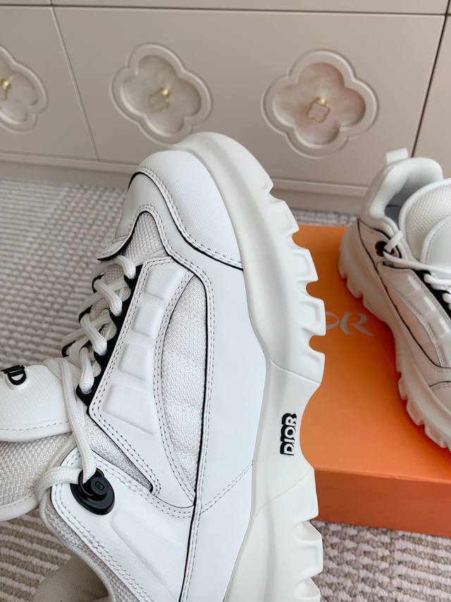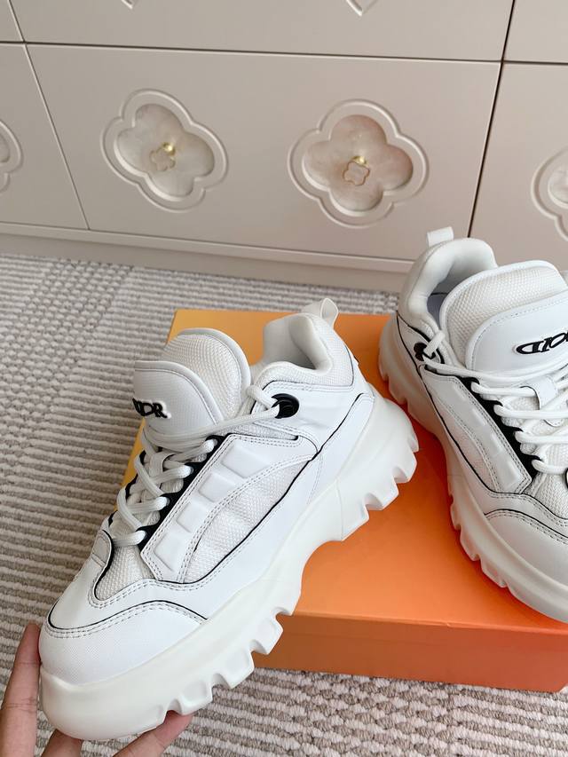 2055春季新品 Dior Snow 德比鞋是dior与英国赛车手lewis Hamilton 联名胶囊系列中的独家款式。该款鞋展现了dior卓越的工艺技艺,重新演绎登山鞋风格,融合品牌的高级定制元素与强烈的设计感。黄色皮革效果的科技面料和同色系科技网布拼接材质,搭配双加厚鞋舌与后跟上的dior与 Lewishamilton联名标识,鞋带钩上悬挂着联名款独特标识吊饰。加厚鞋领、厚实且富有弹性的锯齿状橡胶鞋底以及加固鞋头设