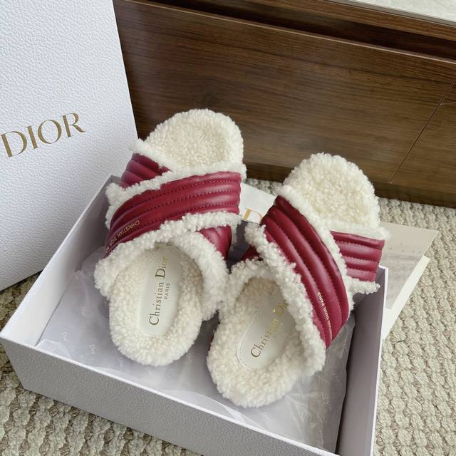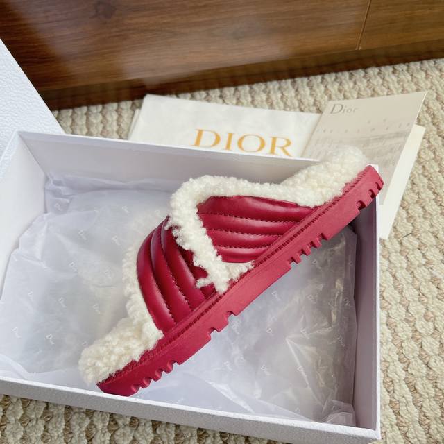 毛里10#迪奥最新交叉凉拖鞋羊毛拖 经典耐看的懒人拖鞋,购入原版开发超级精美好看,洋气吸睛 舒适百搭 鞋面牛皮/羊毛 原版大底 Size:35-41