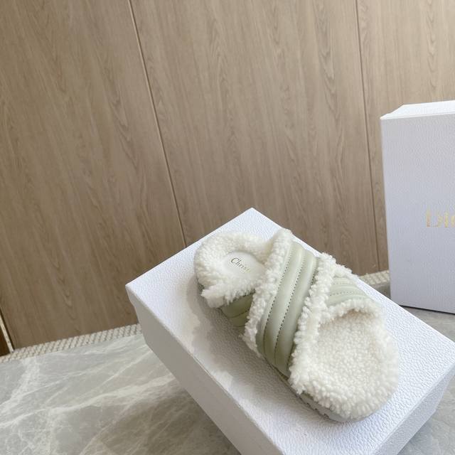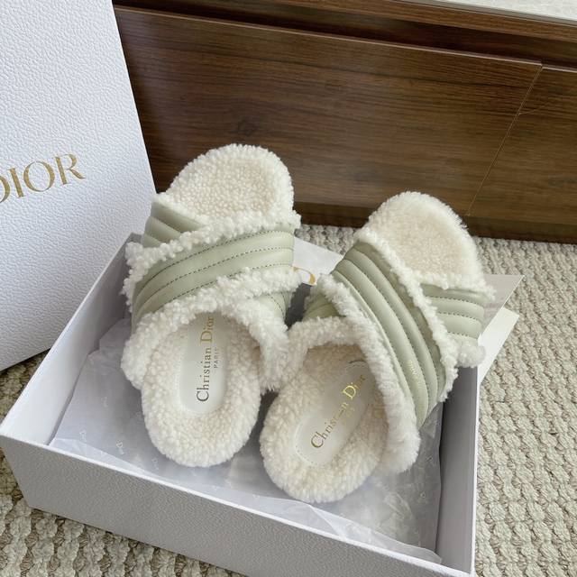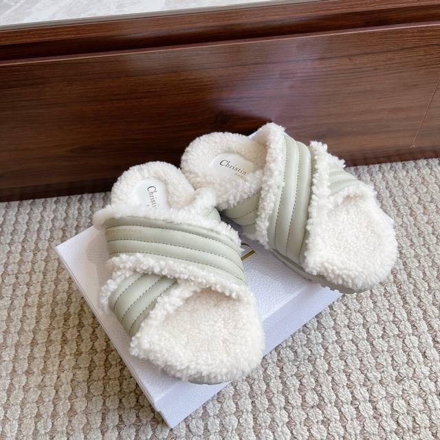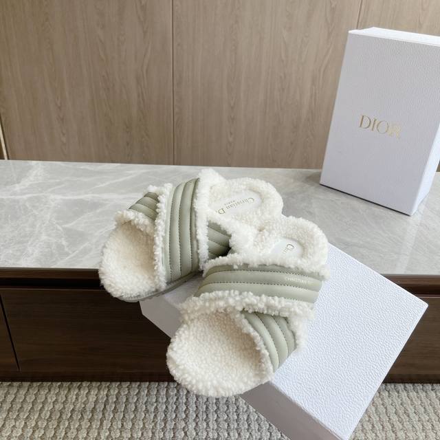 毛里10#迪奥最新交叉凉拖鞋羊毛拖 经典耐看的懒人拖鞋,购入原版开发超级精美好看,洋气吸睛 舒适百搭 鞋面牛皮/羊毛 原版大底 Size:35-41