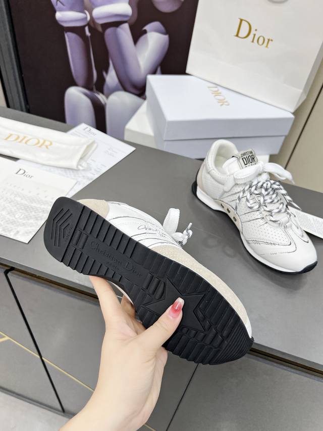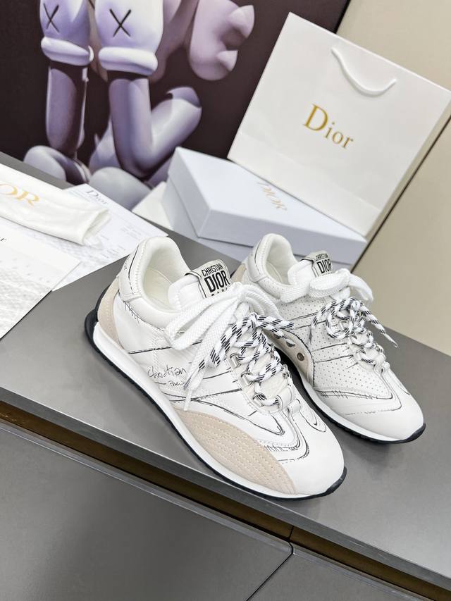 这款 D-Sketch运动鞋是二零二五春夏成衣系列新品,彰显经典的复古美学。采用金色调褶皱羊皮革和金色调叠层牛皮革等材质精心制作,,搭配米色绒面牛皮革镶片和双鞋带。侧面饰以手写风格的Christian Dior paris标志,鞋跟和鞋舌点缀以Christian Dior paris 标志镶片和标牌。搭配双色纤薄橡胶鞋底更显精致