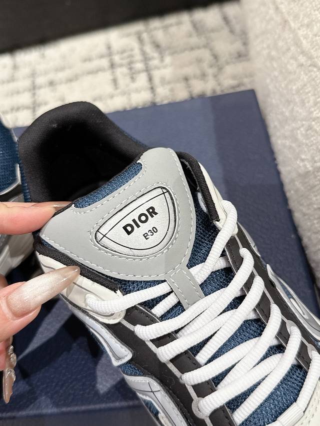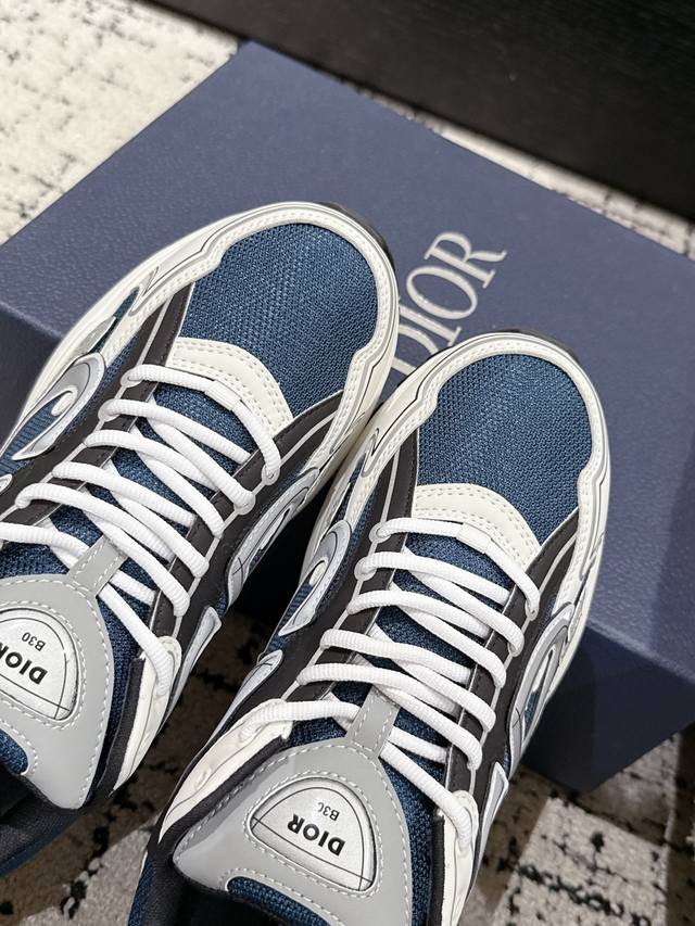 原版11740购入开发 做货 全新B30运动鞋 顺应复古市场的趋势的 Dad Shoes风格鞋款鞋舌上的Dior标志 也注明了这双鞋是B30的型号!B30运用了质感细腻的皮革和网眼布面材质拼接成鞋身,鞋身两侧有显眼的字母Cd 表明身份,鞋身多处线条勾勒细节 让鞋子看起来不那么单调、复古味十足,配送专柜精美包装