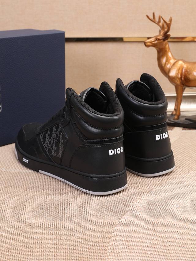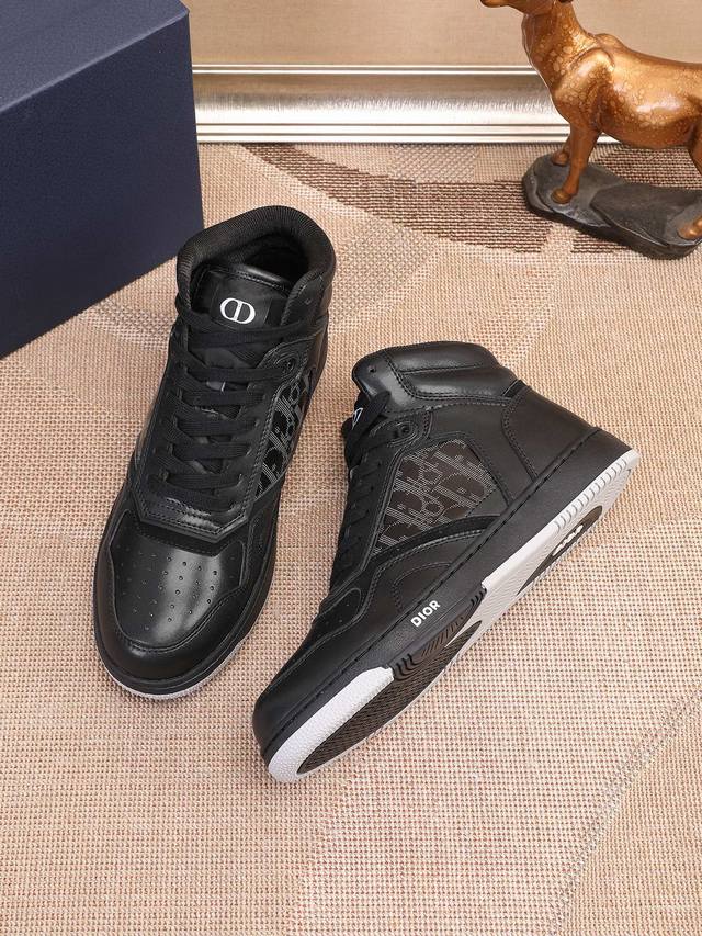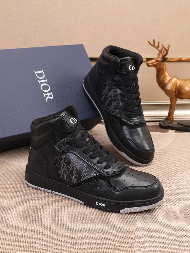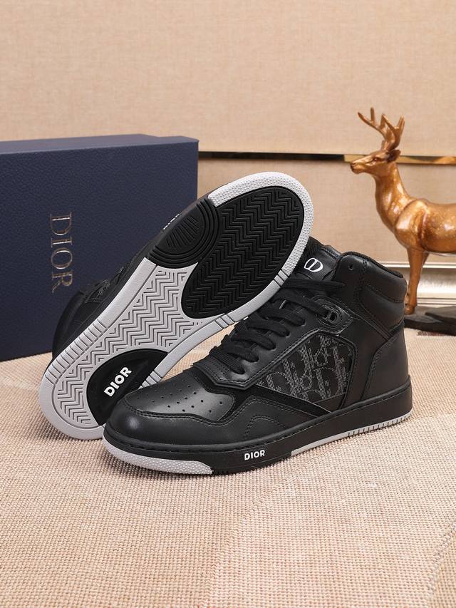 迪奥高帮系列新品上市延续dior的经典款式。采用顶级光滑牛皮精心制作,双色橡胶底,后侧鞋口和鞋跟处均带有品牌标志性细节,提升格调。脚踝处搭配oblique印花系带,可调节适合度与整体设计相得益彰,时尚百搭,可为各式造型增光添彩,黑、蓝、红,咖啡,灰色,白色可选,码数38-44
