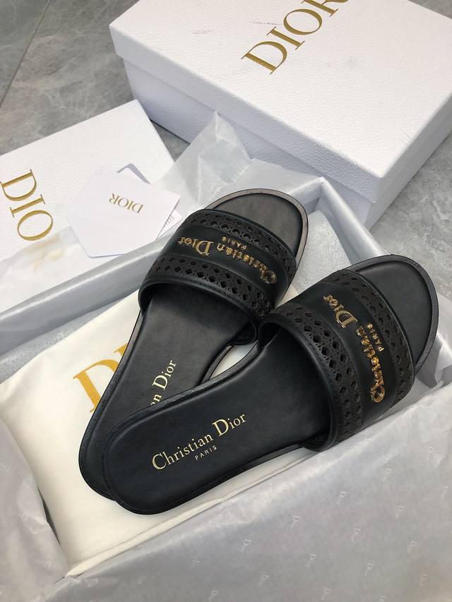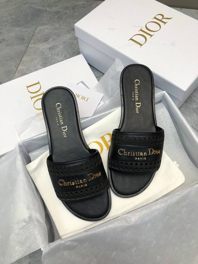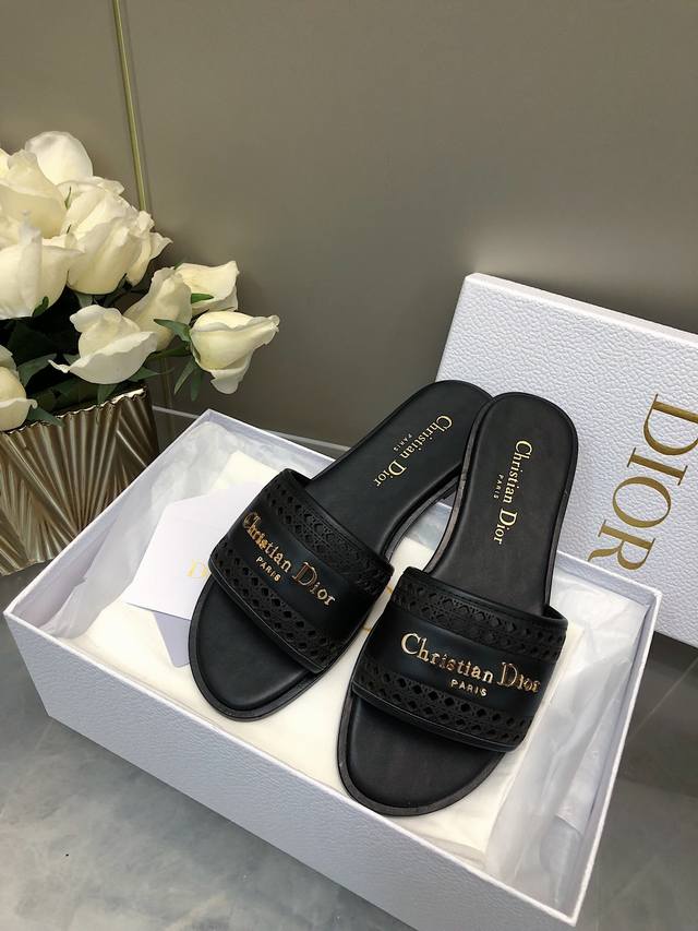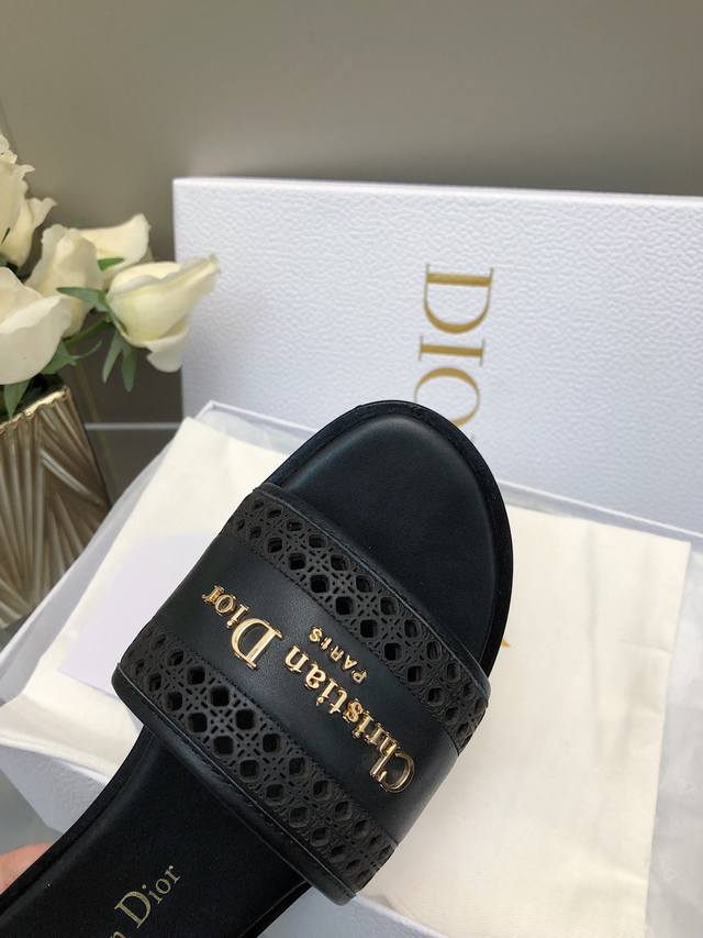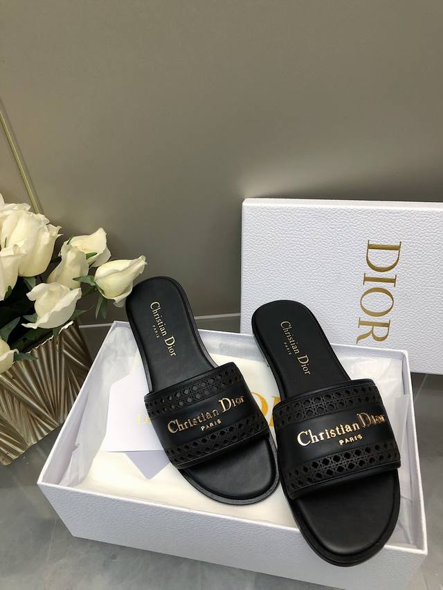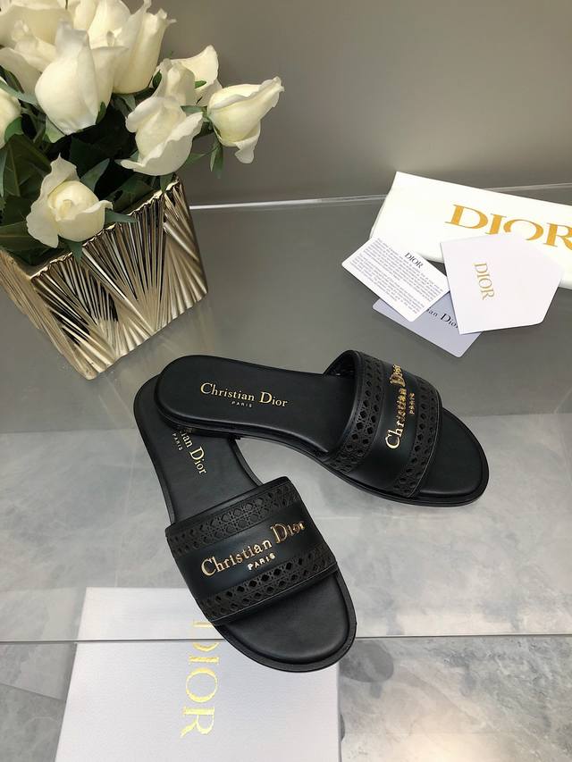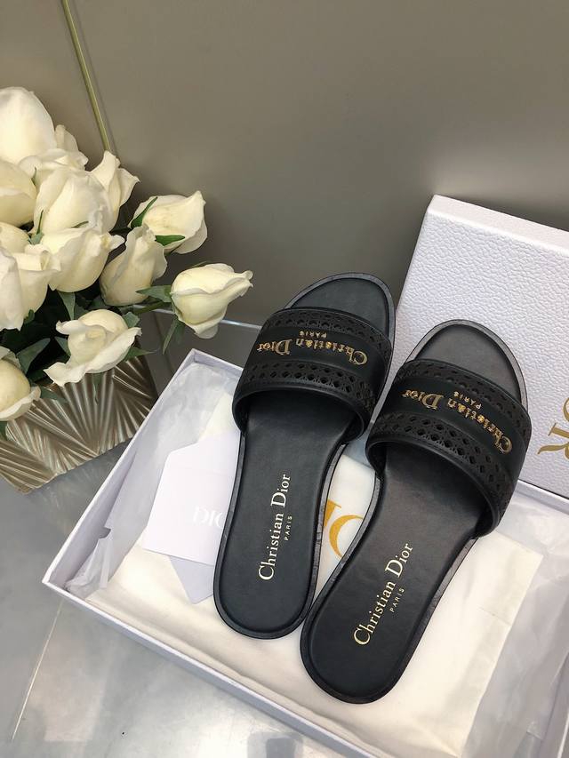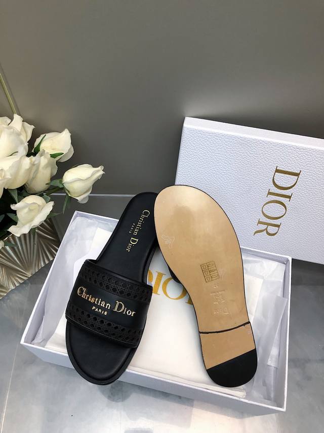 迪奥 Dior 早春新款女鞋 Cd字母logo平底拼色一字拖鞋 市面顶级版本 材质:鞋面进口牛皮 牛皮皮内里+意大利真皮大底 跟高:平跟size:35-41