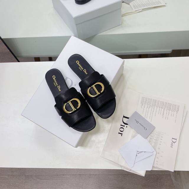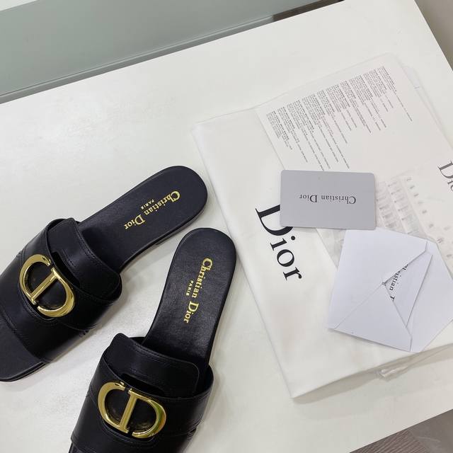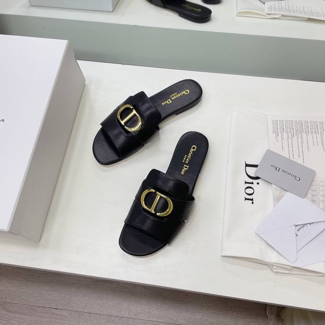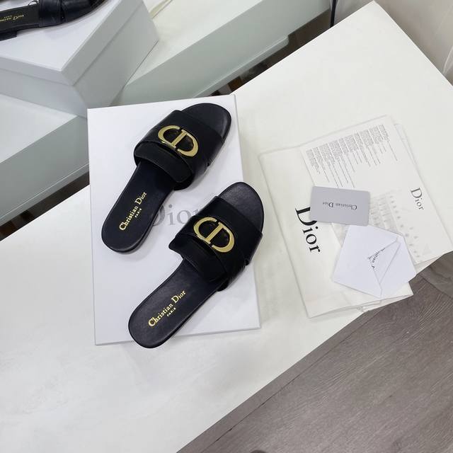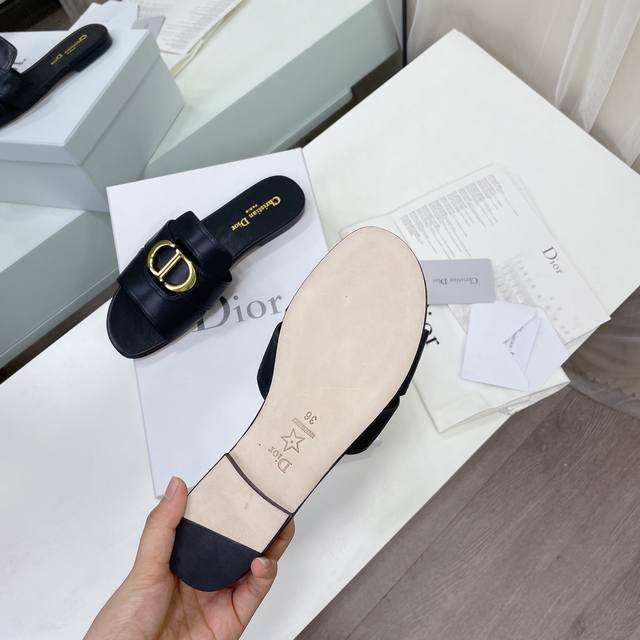 迪奥 Dior 春夏新款 Dway 平底一字拖拼色女鞋 Cd字母logo立体刺绣圆头露趾凉拖鞋 原版开发市面顶级版本...