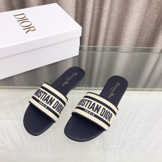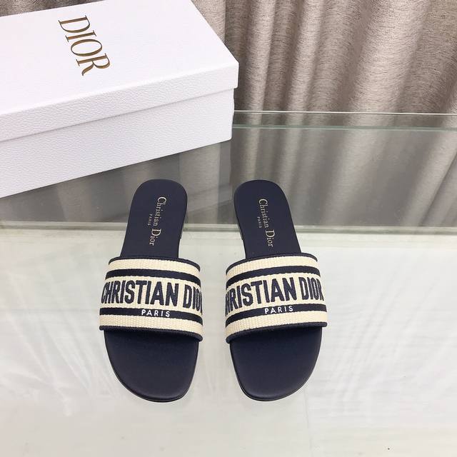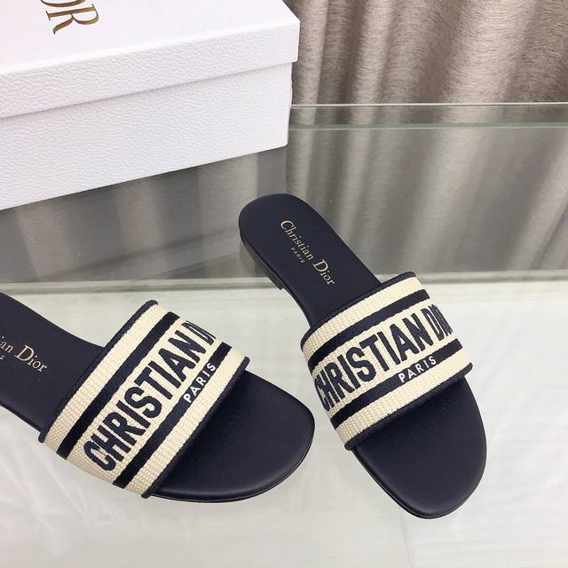 迪奥 Dior 春夏新款 Dway 平底一字拖拼色女鞋 Cd字母logo立体刺绣圆头露趾凉拖鞋 原版开发市面顶级版本