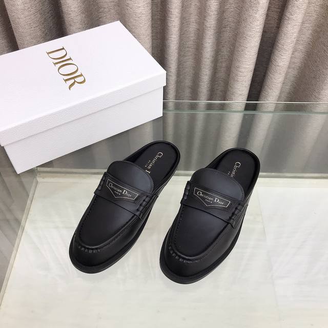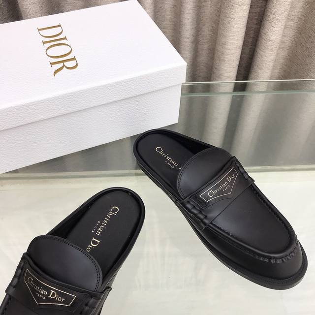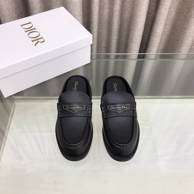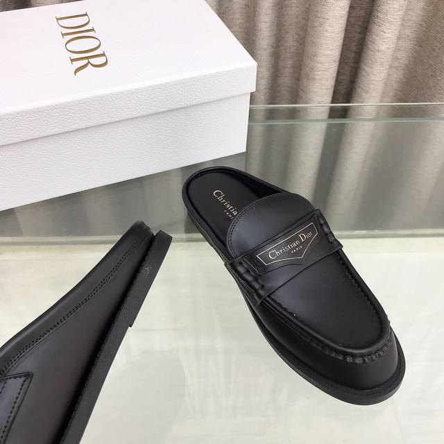 迪奥 Dior 秋冬新款 D-Boy女鞋 Cd字母logo穆勒鞋 明星同款平底圆头凉拖鞋 市场顶级版本 材质:鞋面进口开边珠小牛皮+水染牛皮内里+原版开模橡胶大