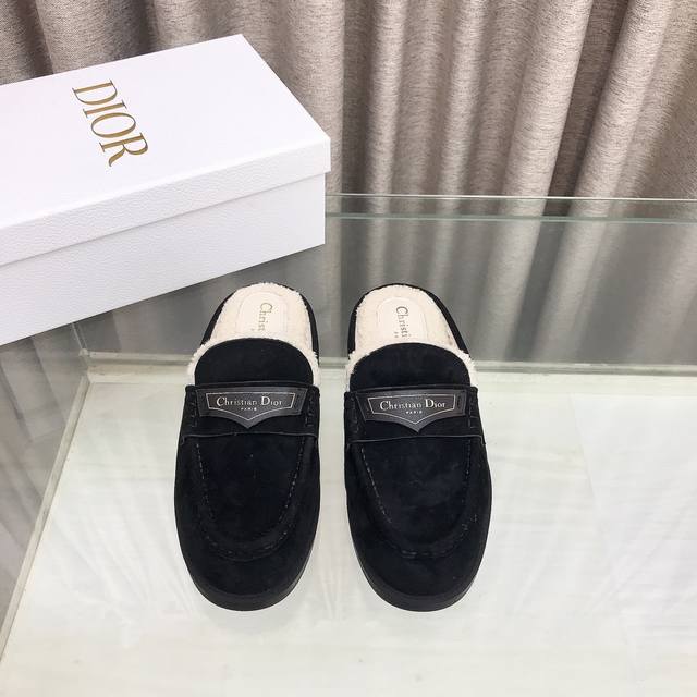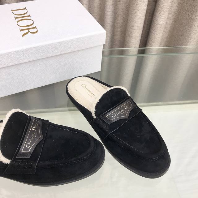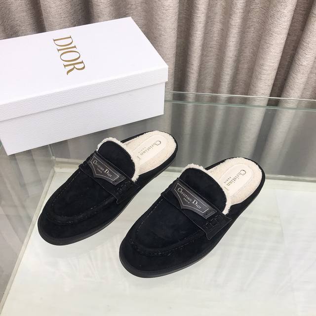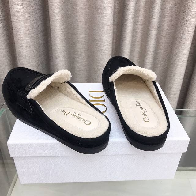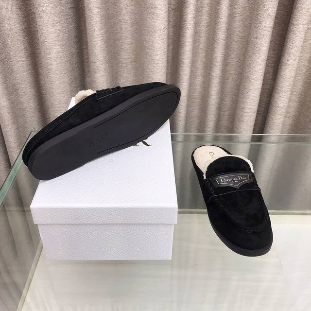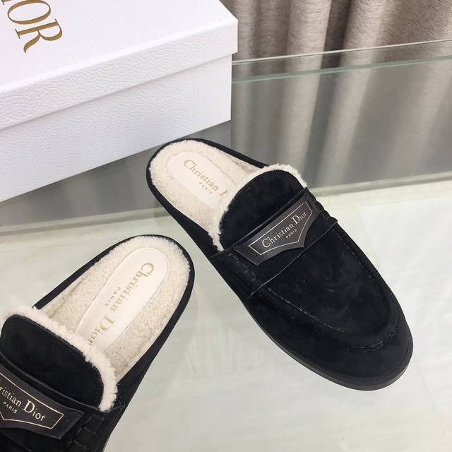/ 迪奥 Dior 秋冬新款 D-Boy女鞋 Cd字母logo穆勒鞋 明星同款平底圆头居家毛毛拖鞋 市场顶级版本 材质:鞋面进口牛麂皮+100%羊羔毛内里+原版开模