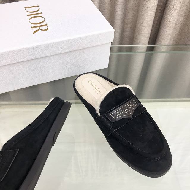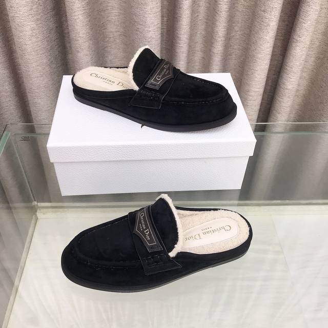 迪奥 Dior 秋冬新款 D-Boy女鞋 Cd字母logo穆勒鞋 明星同款平底圆头居家毛毛拖鞋 市场顶级版本 材质:鞋面进口牛麂皮+100%羊羔毛内里+原版开模