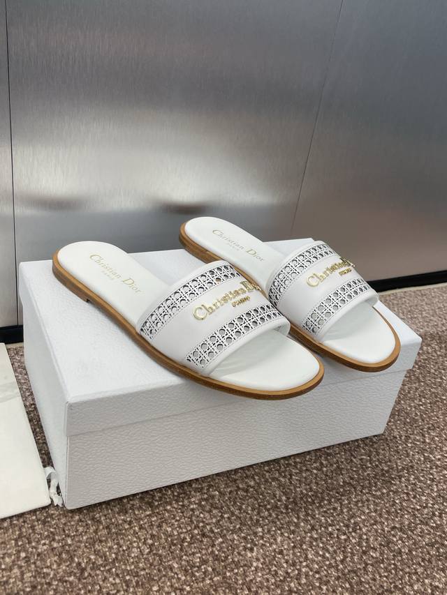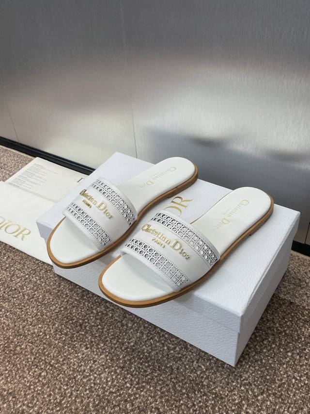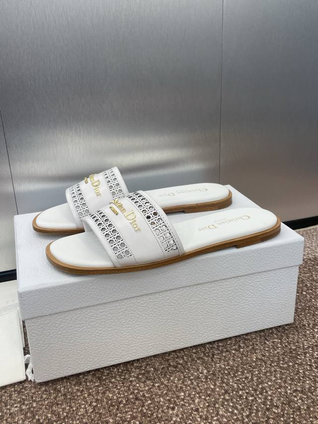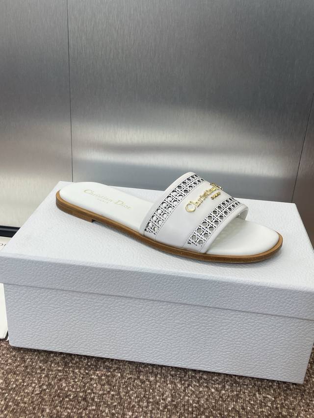 迪奥 Dior 2025 春夏新款 D-Lane 果冻色镂空女鞋 Cd字母logo五金扣平底圆头露趾凉拖鞋 市面顶级版本 独家发售材质:鞋面进口小牛皮+水染羊皮
