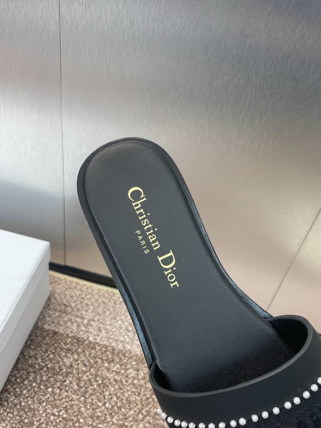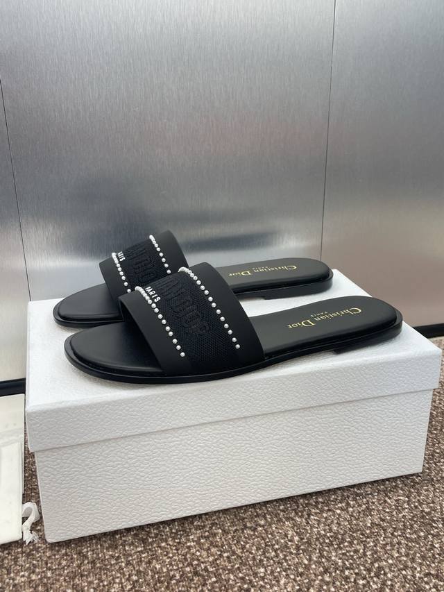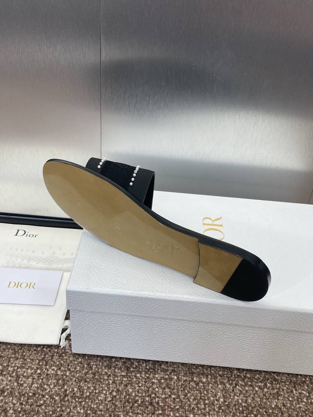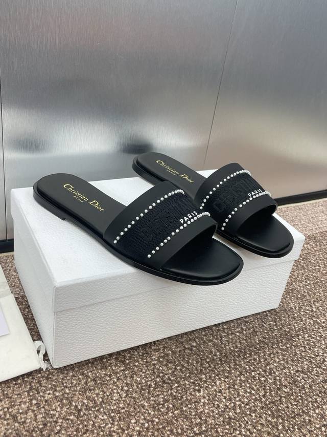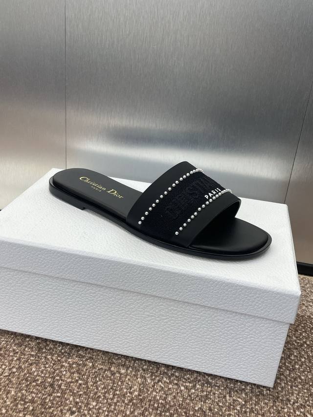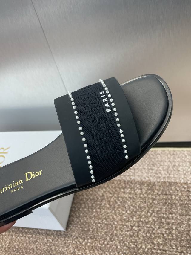 迪奥 Dior 2025 春夏新款 Dway 平底一字拖拼色珍珠女鞋 Cd字母logo立体刺绣平底凉鞋 方头果冻色露趾拖鞋 原版开发市面顶级版本