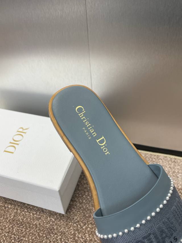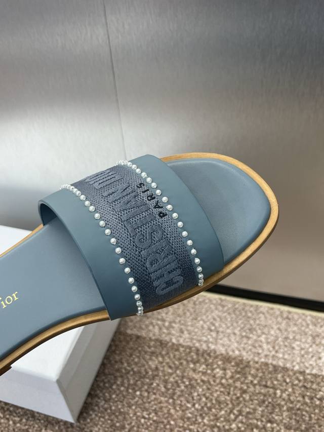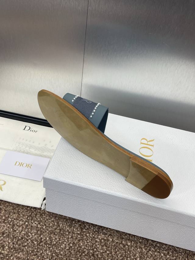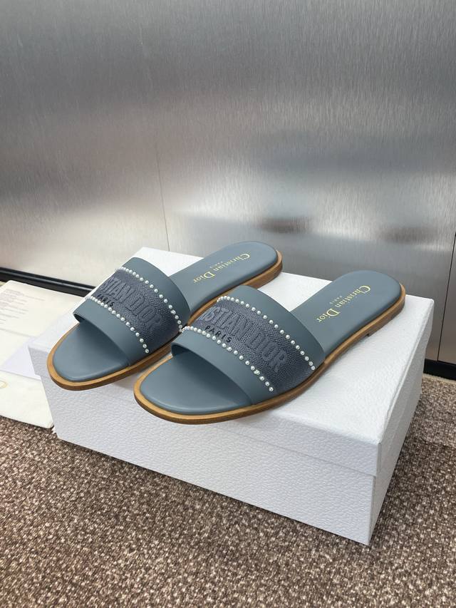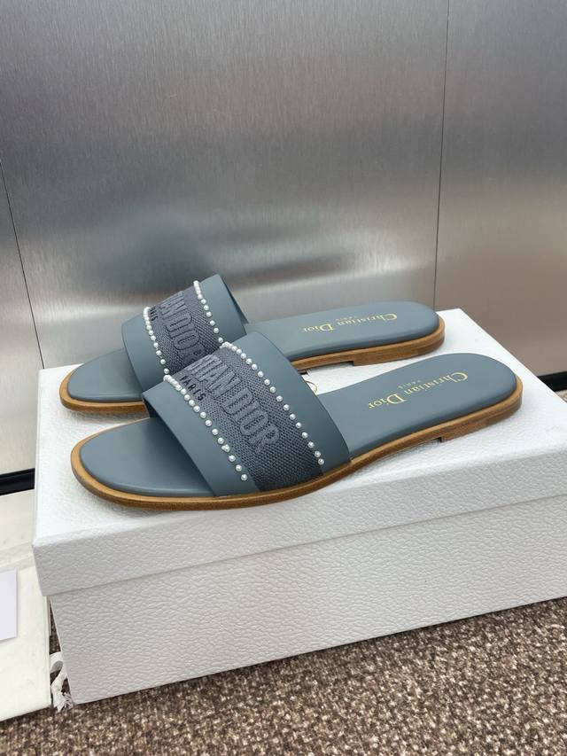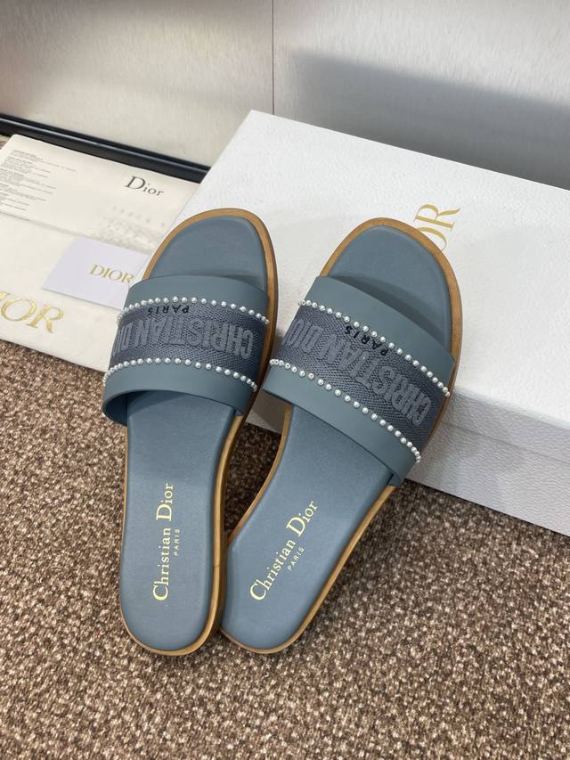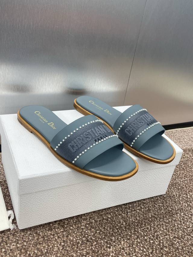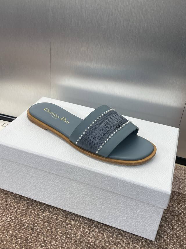 迪奥 Dior 2025 春夏新款 Dway 平底一字拖拼色珍珠女鞋 Cd字母logo立体刺绣平底凉鞋 方头果冻色露趾拖鞋 原版开发市面顶级版本