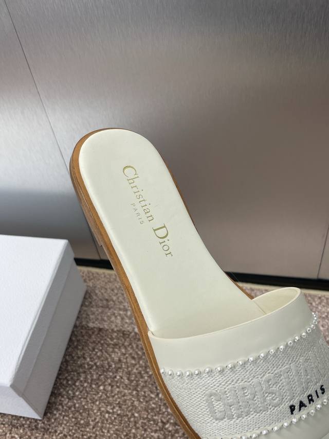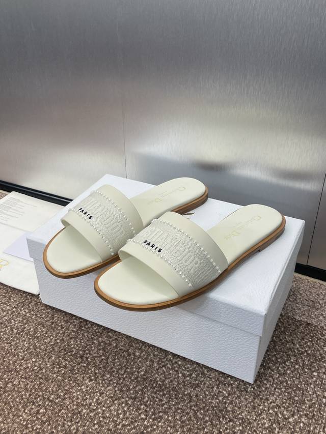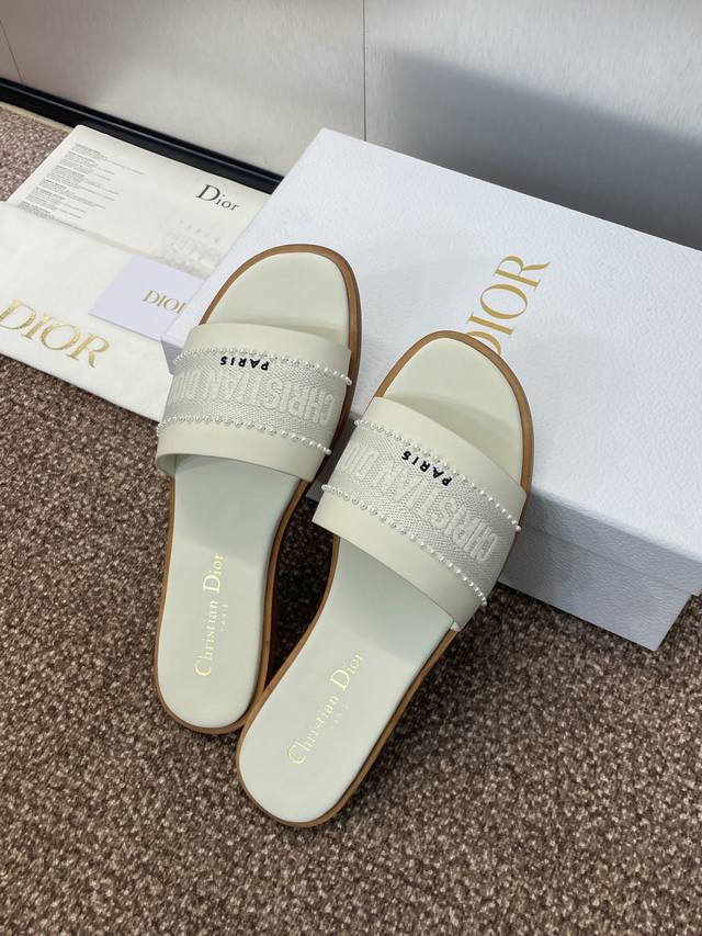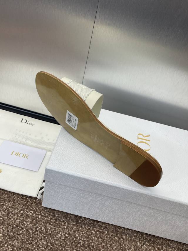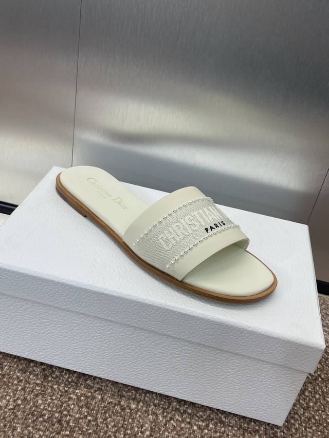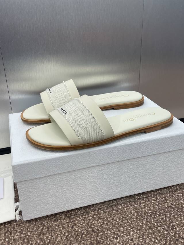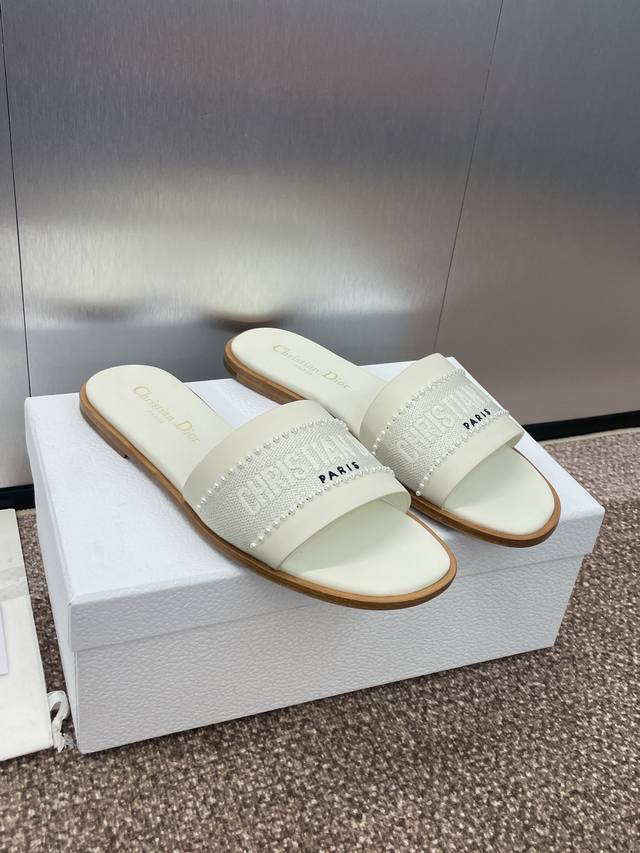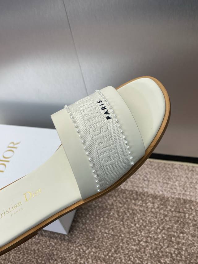 迪奥 Dior 2025 春夏新款 Dway 平底一字拖拼色珍珠女鞋 Cd字母logo立体刺绣平底凉鞋 方头果冻色露趾拖鞋 原版开发市面顶级版本