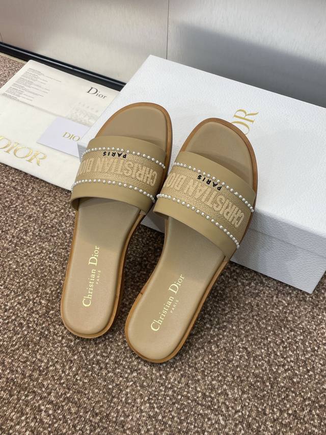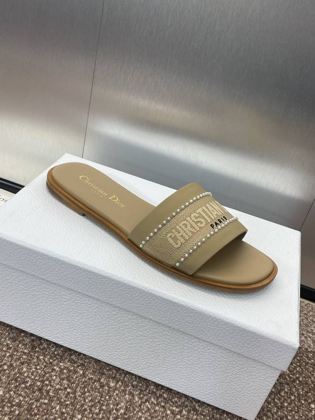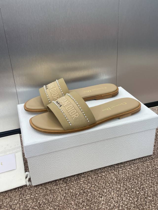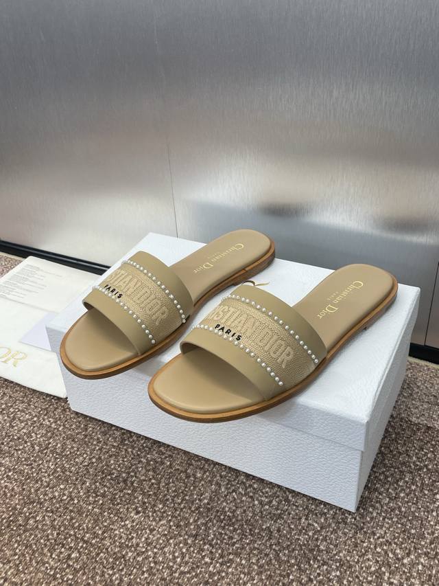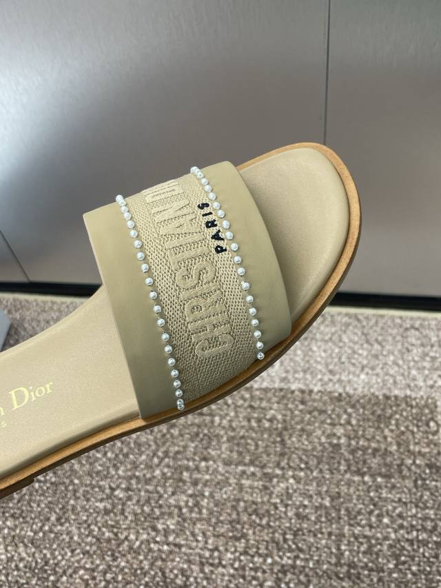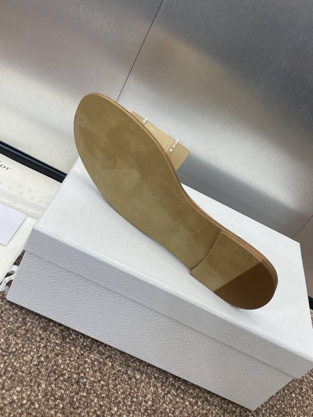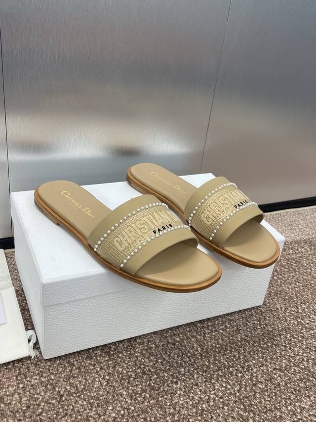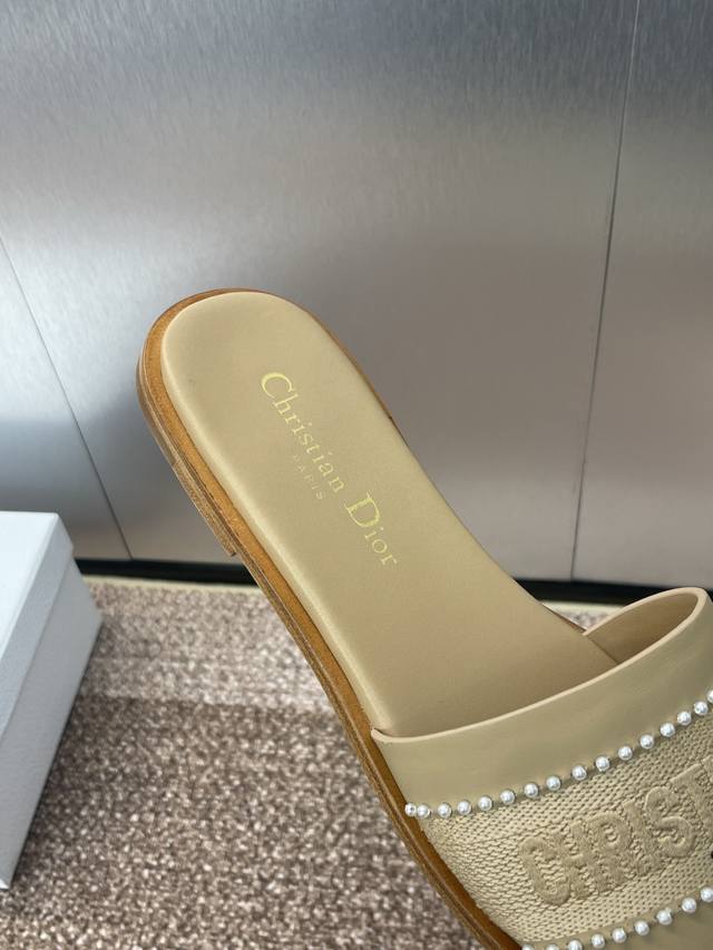 迪奥 Dior 2025 春夏新款 Dway 平底一字拖拼色珍珠女鞋 Cd字母logo立体刺绣平底凉鞋 方头果冻色露趾拖鞋 原版开发市面顶级版本