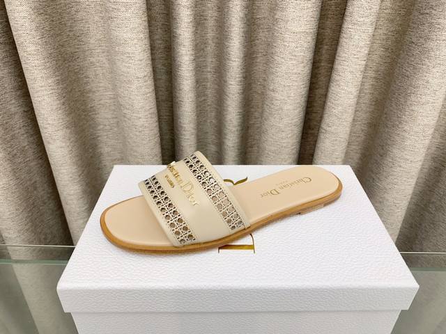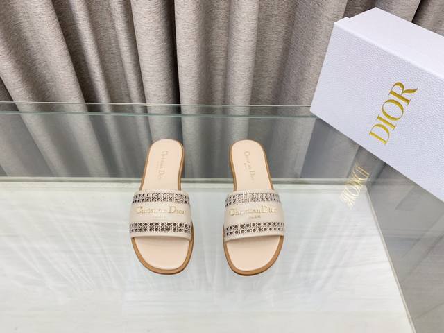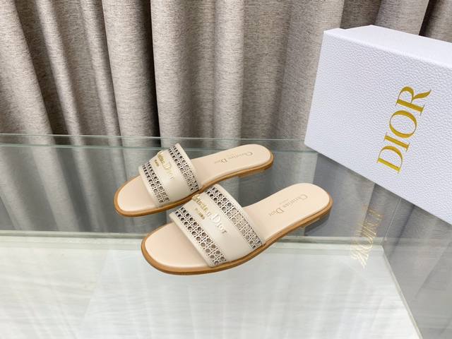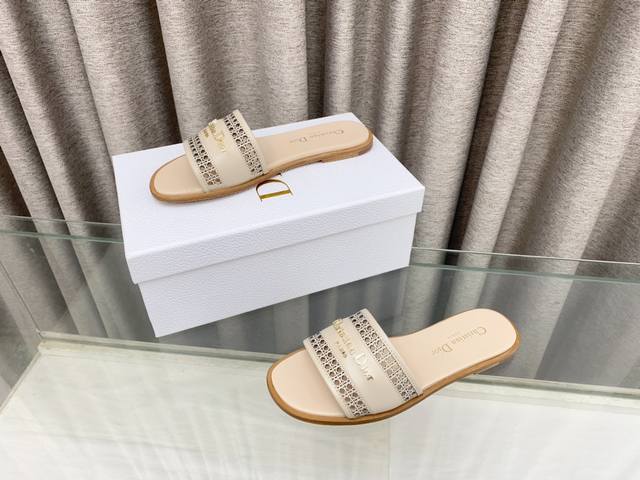 / 迪奥 Dior 2025 春夏新款d-Lane一字拖女鞋 Cd字母logo五金扣平底圆头露趾凉拖鞋 市面顶级版本鞋面:进口小牛皮水里:水染羊皮内里大底:意大利真