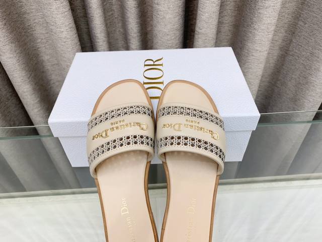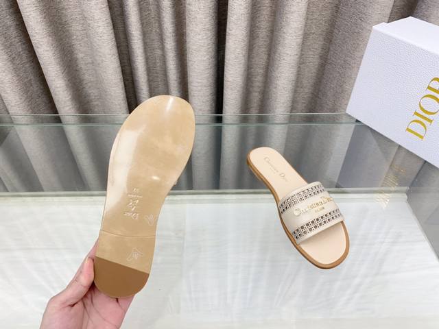 迪奥 Dior 2025 春夏新款d-Lane一字拖女鞋 Cd字母logo五金扣平底圆头露趾凉拖鞋 市面顶级版本鞋面:进口小牛皮水里:水染羊皮内里大底:意大利真