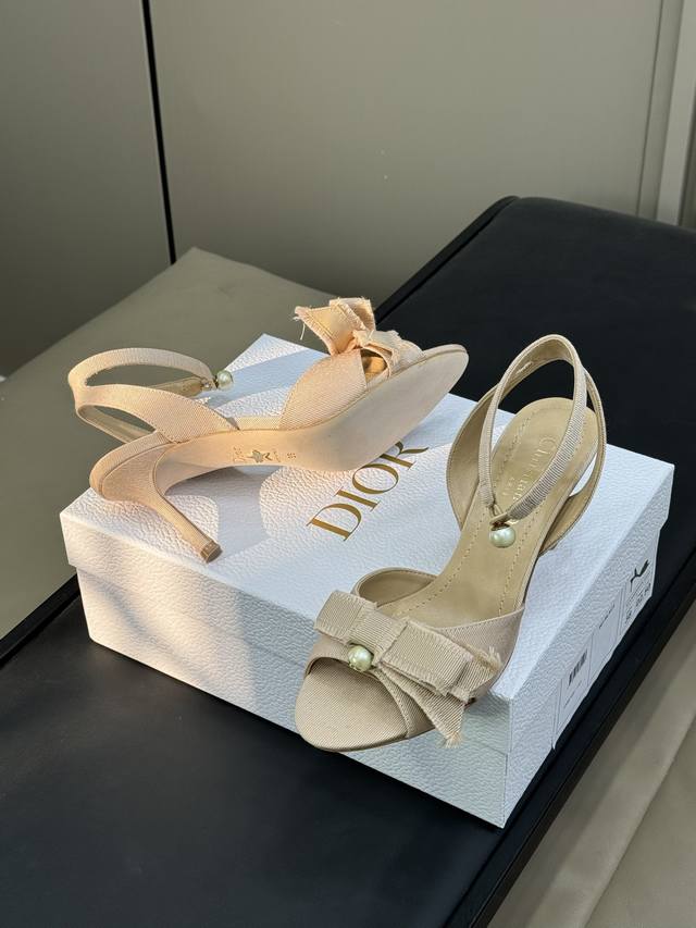 顶级品质 Dior Ss25 New Arrival~ Cd 25春夏 缎面拆絮 蝴蝶结高跟鞋 织带缎面材质,点缀珍珠;随性又高级优雅 羊皮内里 牛皮底 Siz