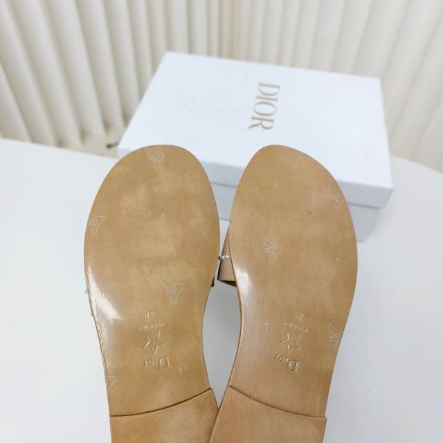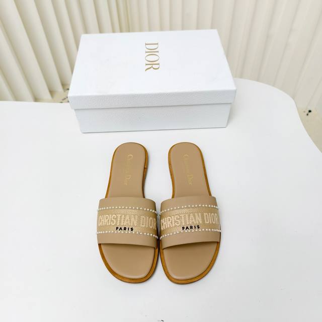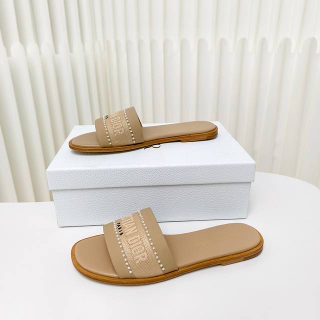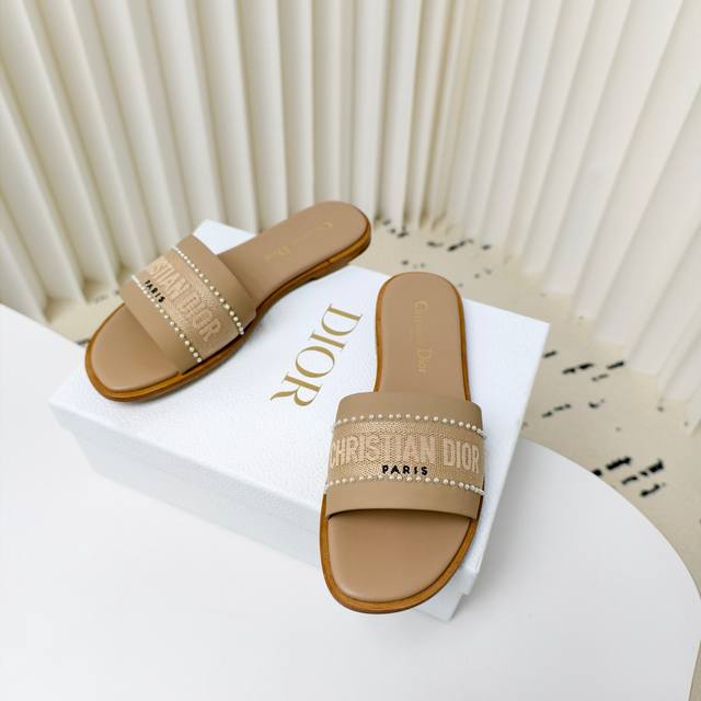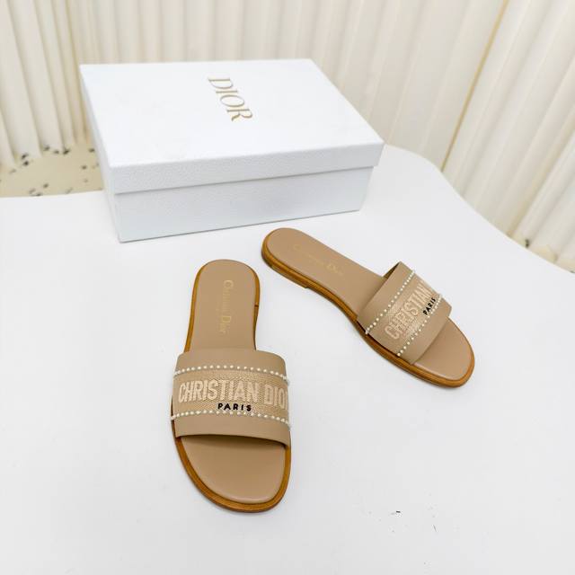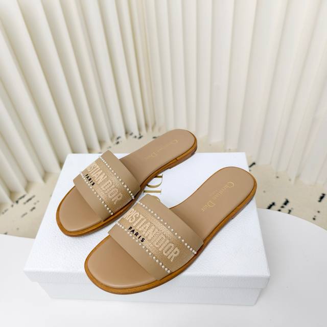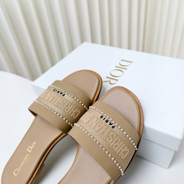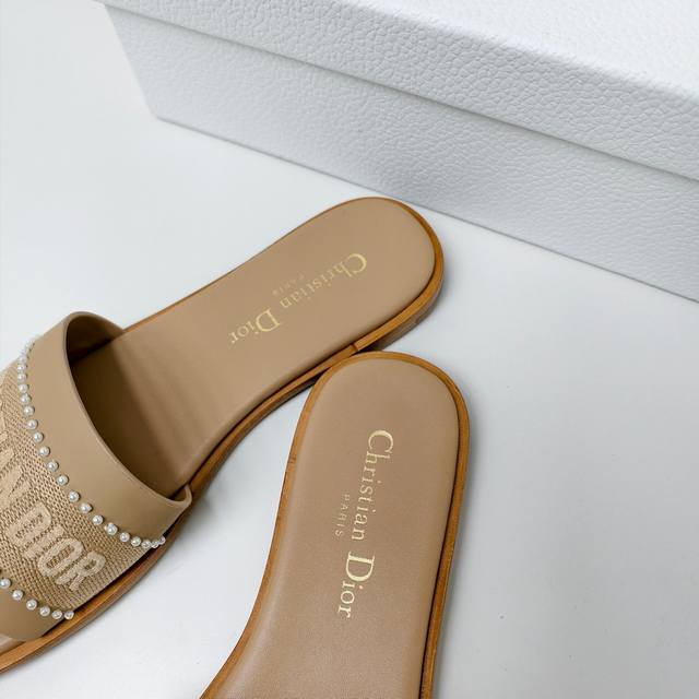 迪奥 Dior 2025 春夏新款 Dway 平底一字拖拼色珍珠女鞋 Cd字母logo立体刺绣平底凉鞋 方头果冻色露趾拖鞋 原版开发市面顶级版本