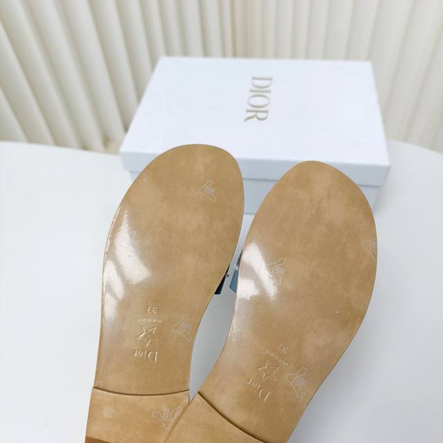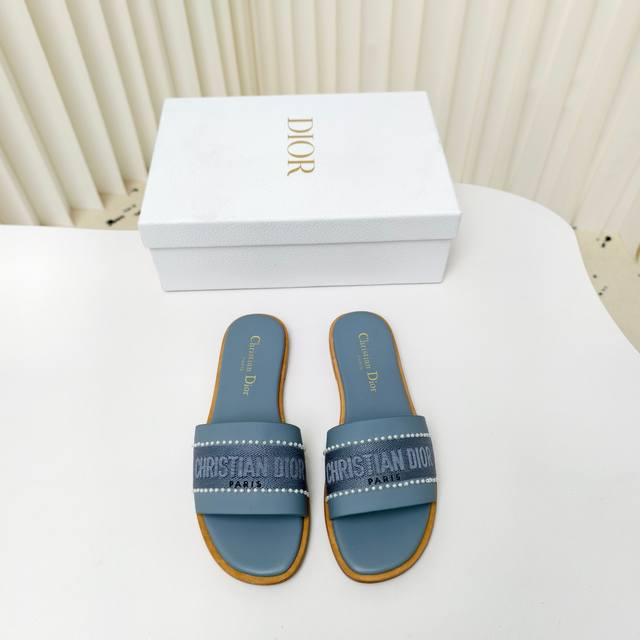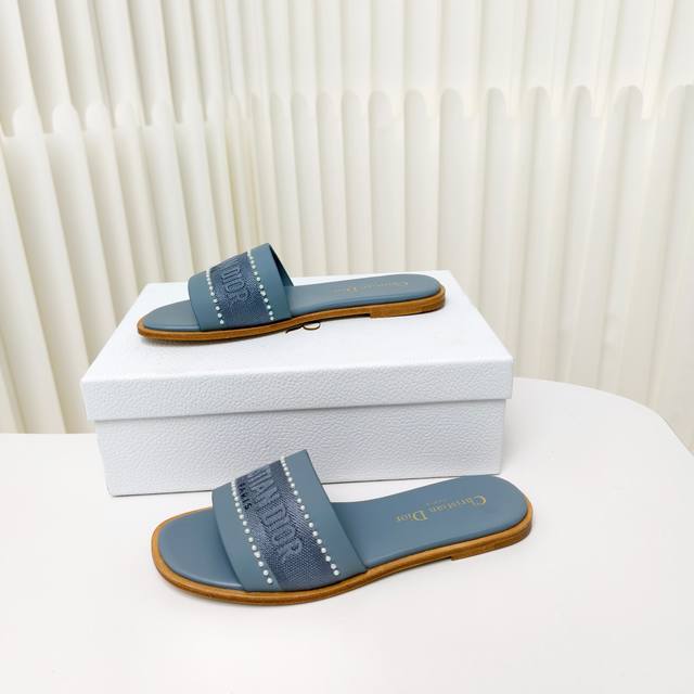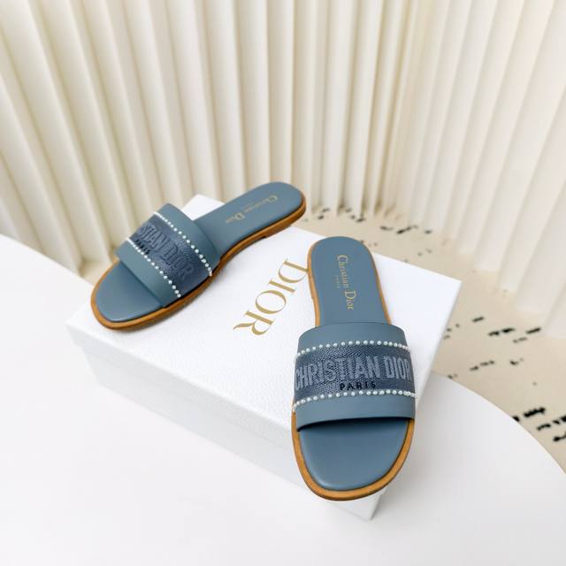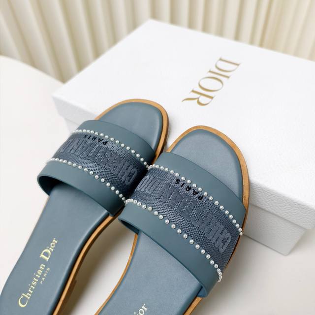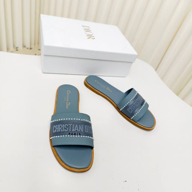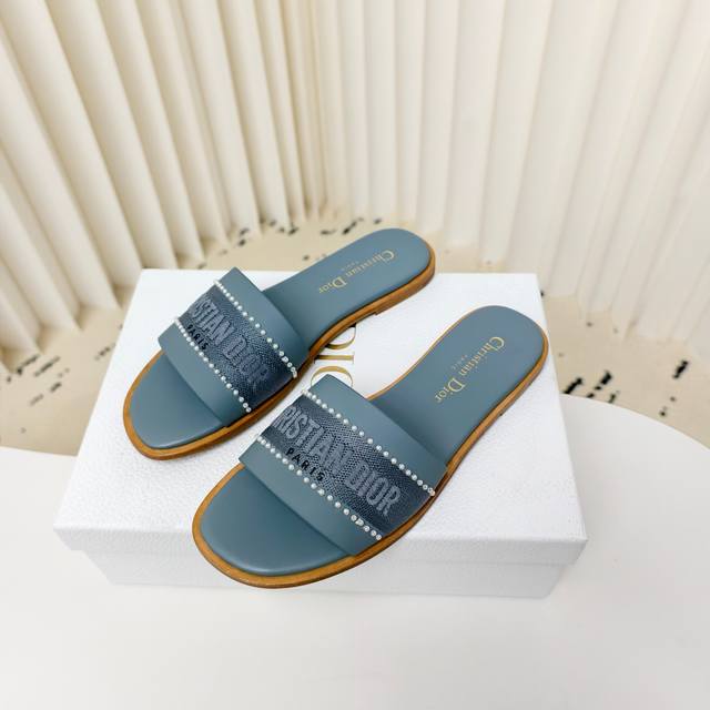 迪奥 Dior 2025 春夏新款 Dway 平底一字拖拼色珍珠女鞋 Cd字母logo立体刺绣平底凉鞋 方头果冻色露趾拖鞋 原版开发市面顶级版本