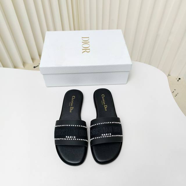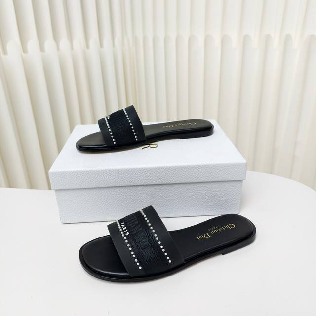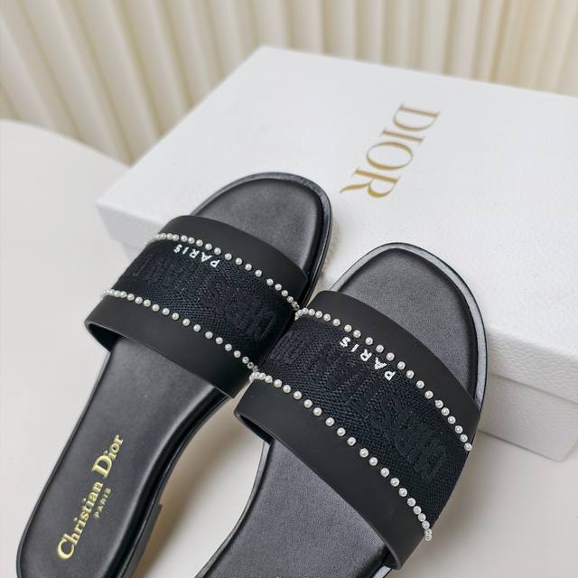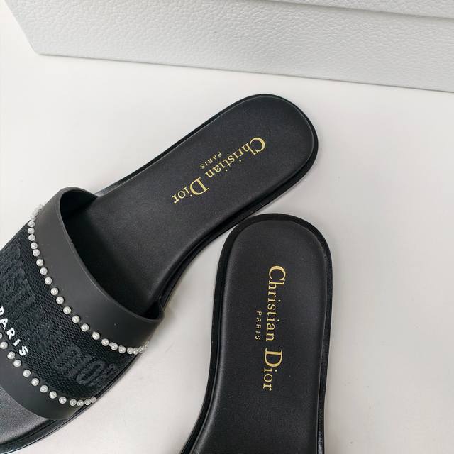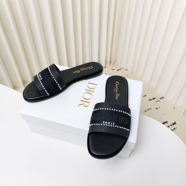 迪奥 Dior 2025 春夏新款 Dway 平底一字拖拼色珍珠女鞋 Cd字母logo立体刺绣平底凉鞋 方头果冻色露趾拖鞋 原版开发市面顶级版本
