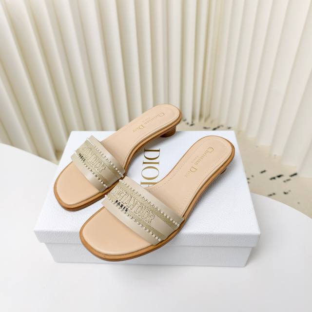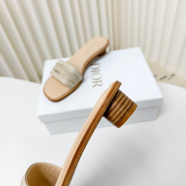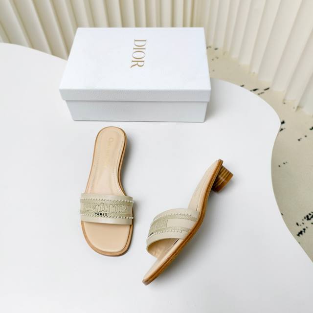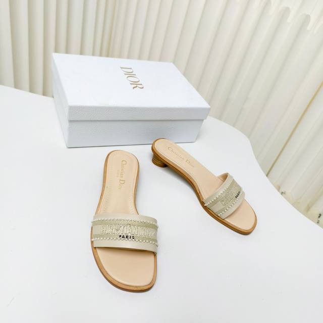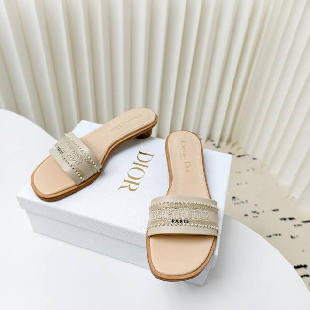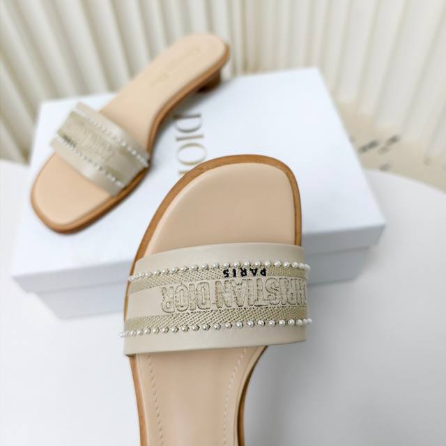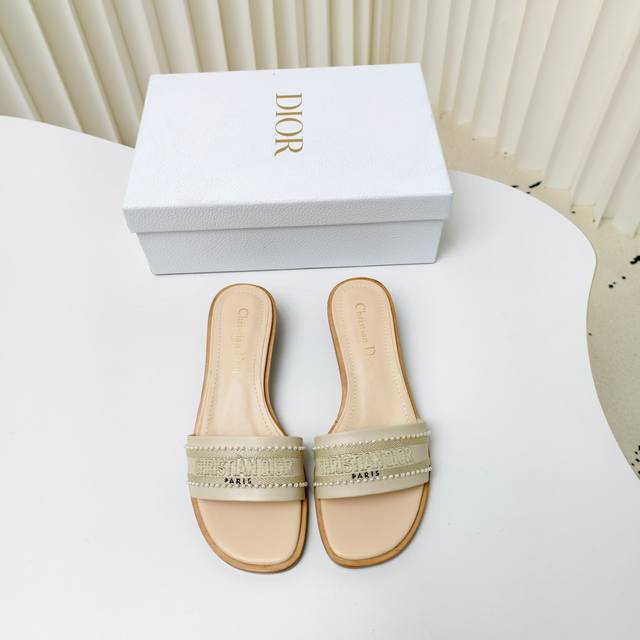 迪奥 Dior 2025 春夏新款 Dway 平底一字拖拼色珍珠女鞋 Cd字母logo立体刺绣平底凉鞋 方头果冻色露趾拖鞋 原版开发市面顶级版本