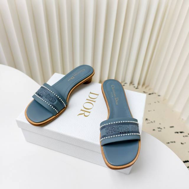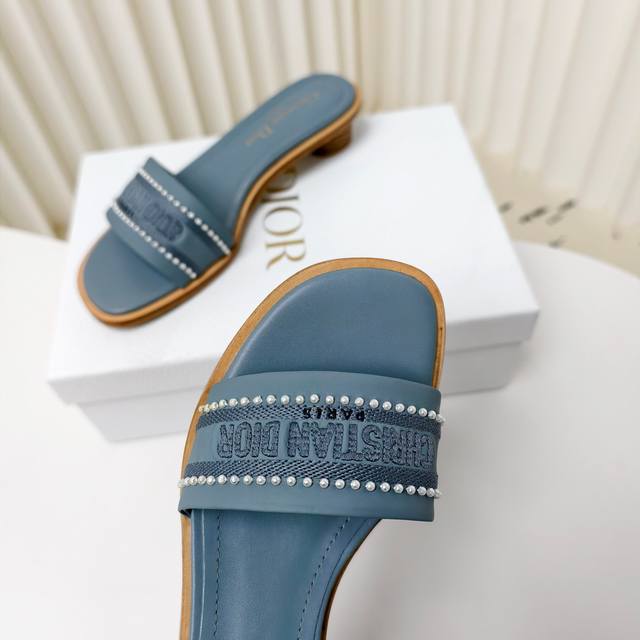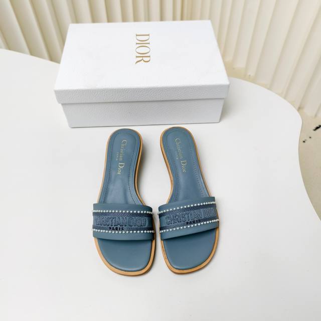 迪奥 Dior 2025 春夏新款 Dway 平底一字拖拼色珍珠女鞋 Cd字母logo立体刺绣平底凉鞋 方头果冻色露趾拖鞋 原版开发市面顶级版本