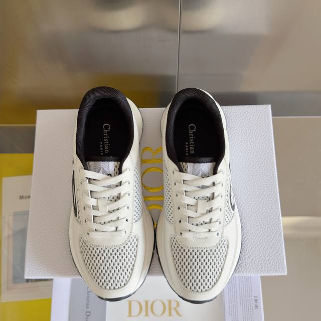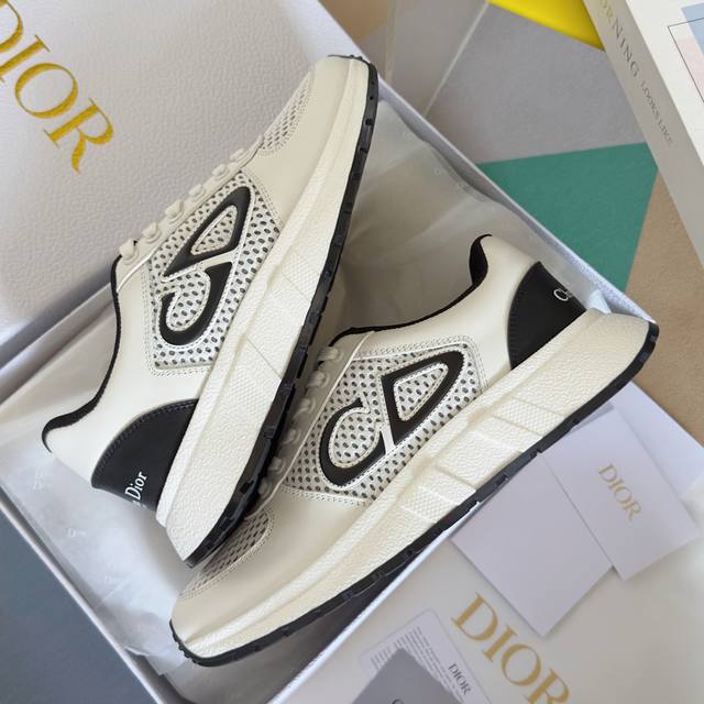 原版购入开发 做货 这款 Run'n'dior 运动鞋是二零二五秋季系列新品,以优雅时尚的造型重新演绎运动风格。鞋面采用白色网眼织物精心制作,鞋带和鞋跟饰以 Christian Dior paris 标志。精致的双色鞋底轻盈柔软,可为各式休闲造型增添高订气质