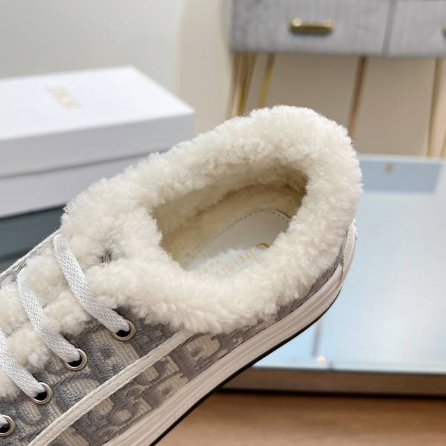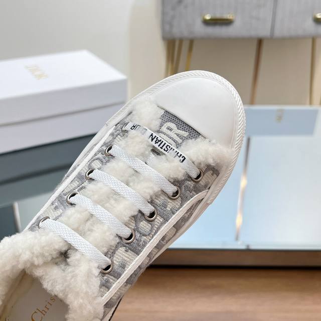 Dior迪奥walk'N秋冬新款、羊毛里系列 老花 刺绣 松糕厚底帆布鞋 休闲运动鞋