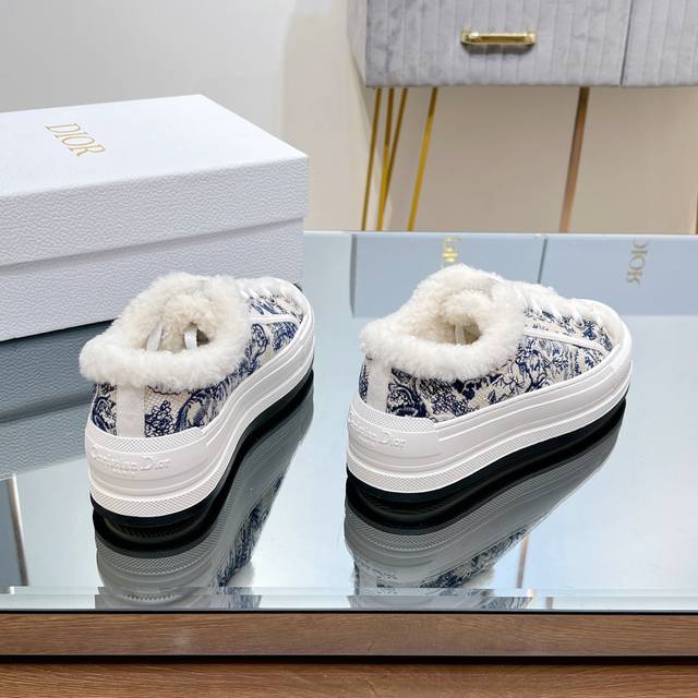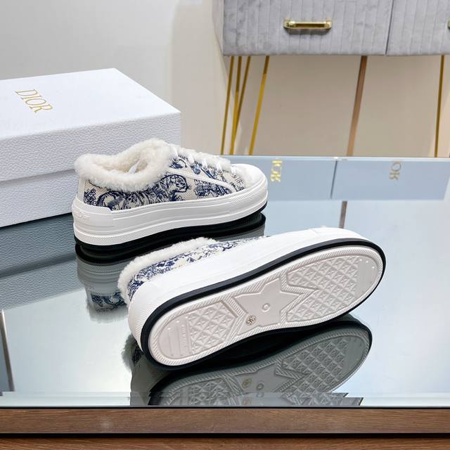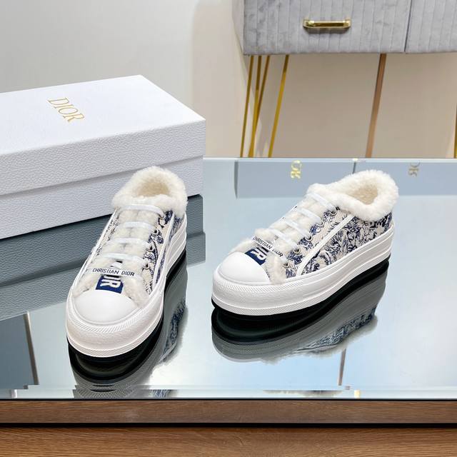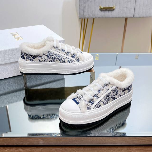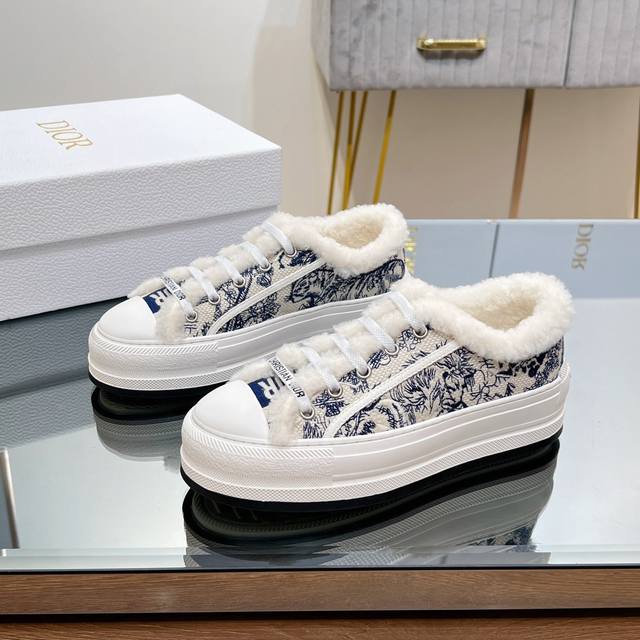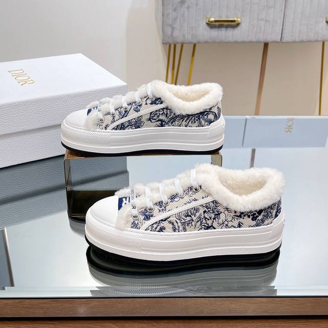 Dior迪奥walk'N秋冬新款、羊毛里系列 老花 刺绣 松糕厚底帆布鞋 休闲运动鞋