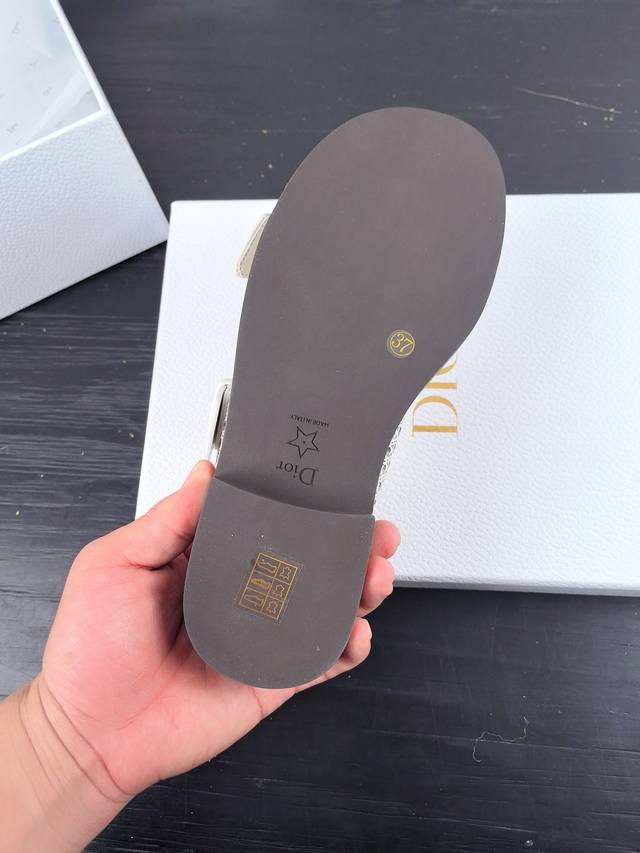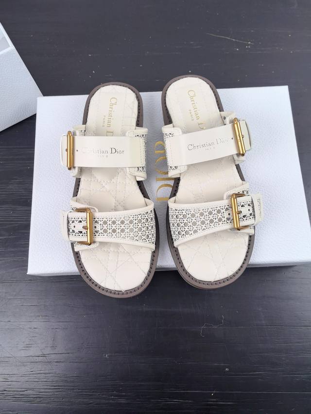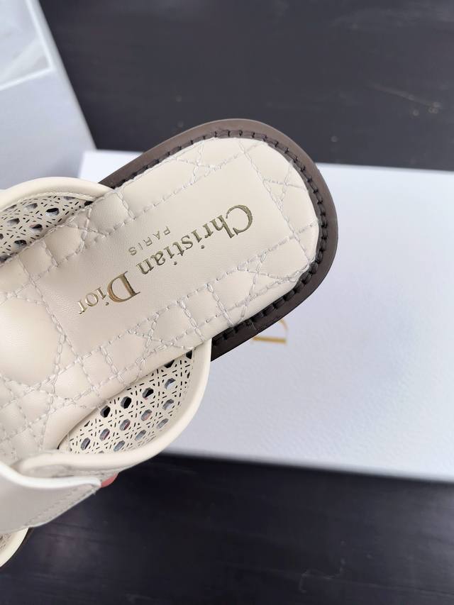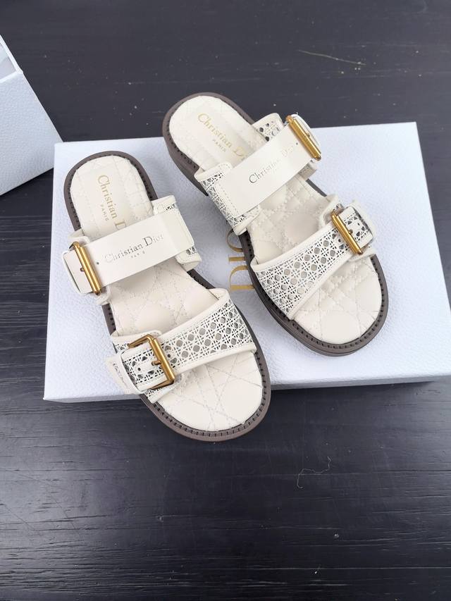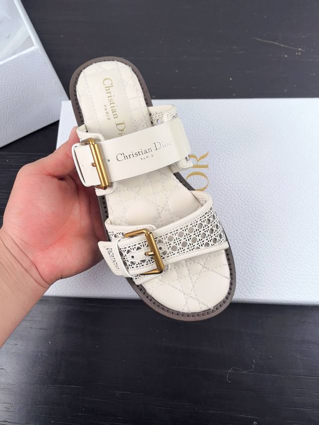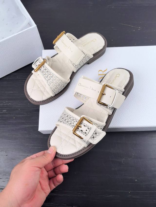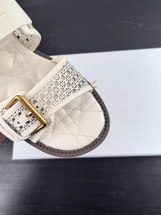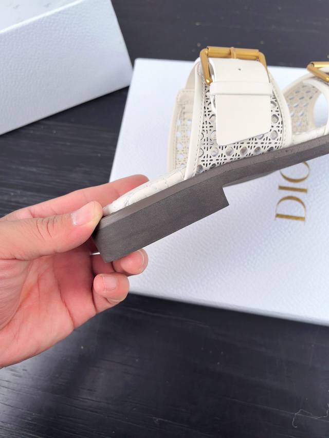 迪奥 Dior 2025 春夏新款 D-Avenue果冻色女鞋 Cd字母Logo五金皮带扣镂空藤格纹平底圆头露趾凉拖鞋 市面顶级版本