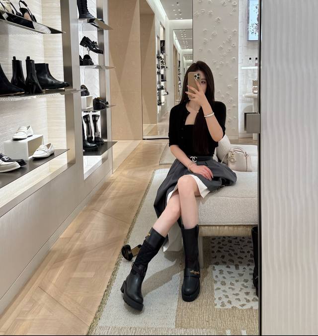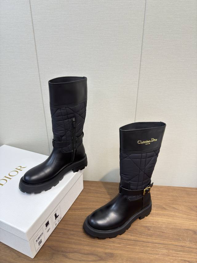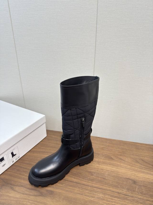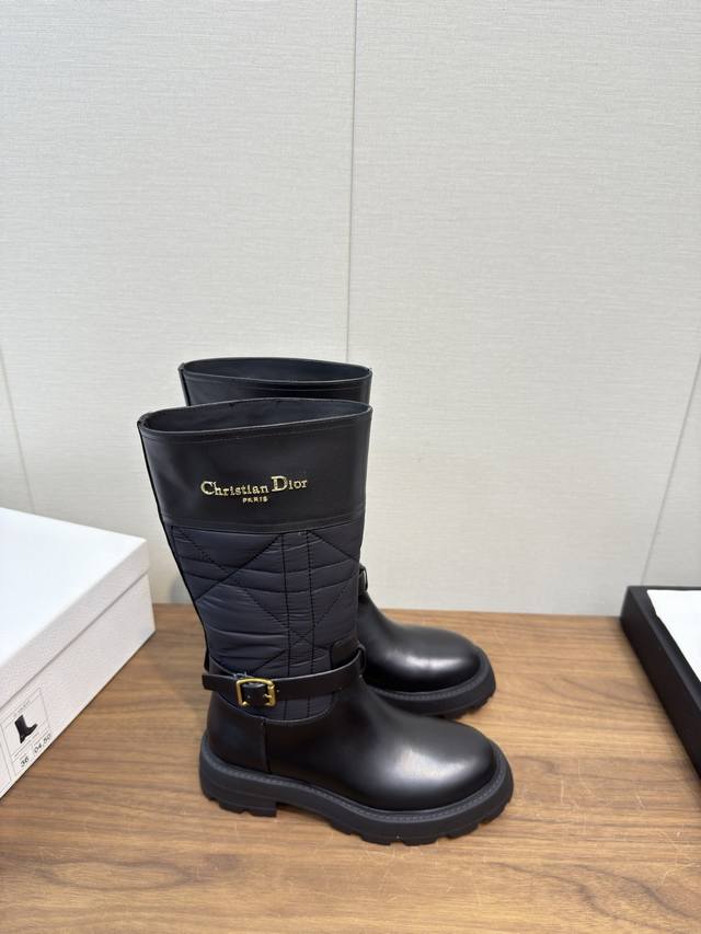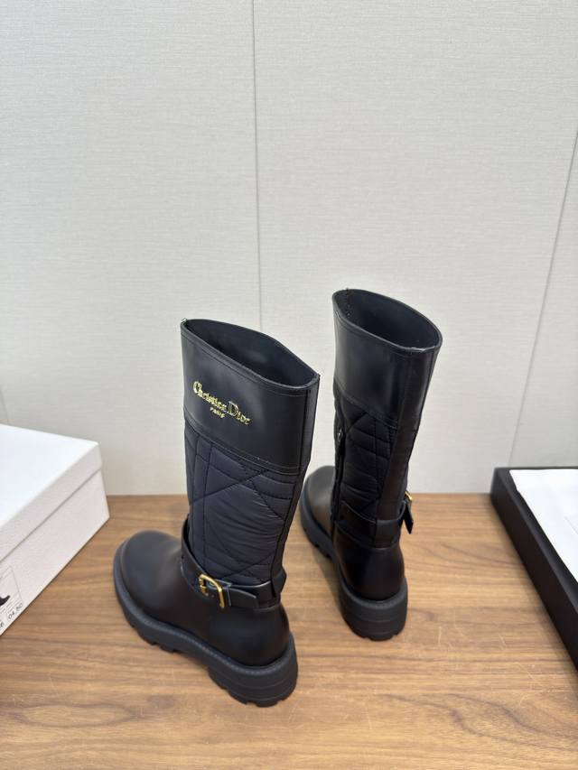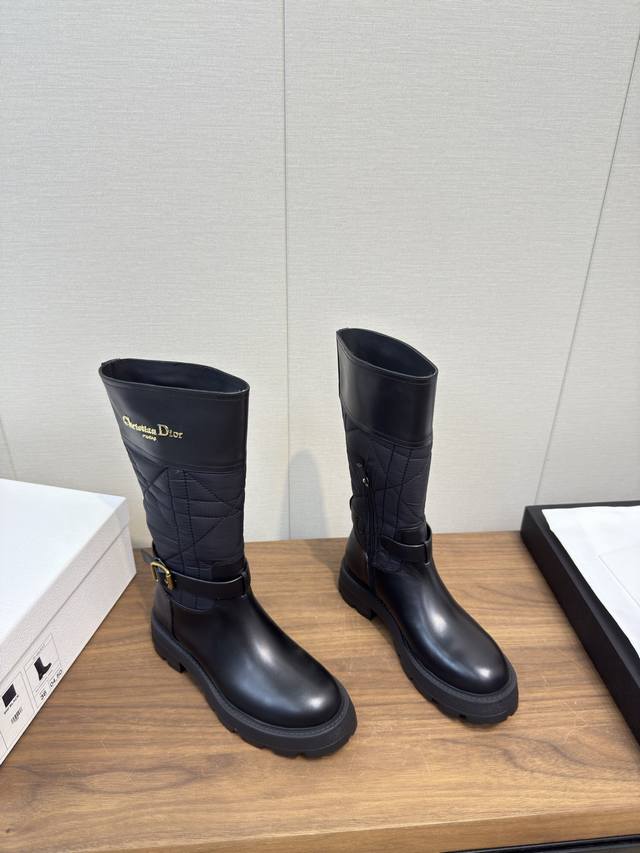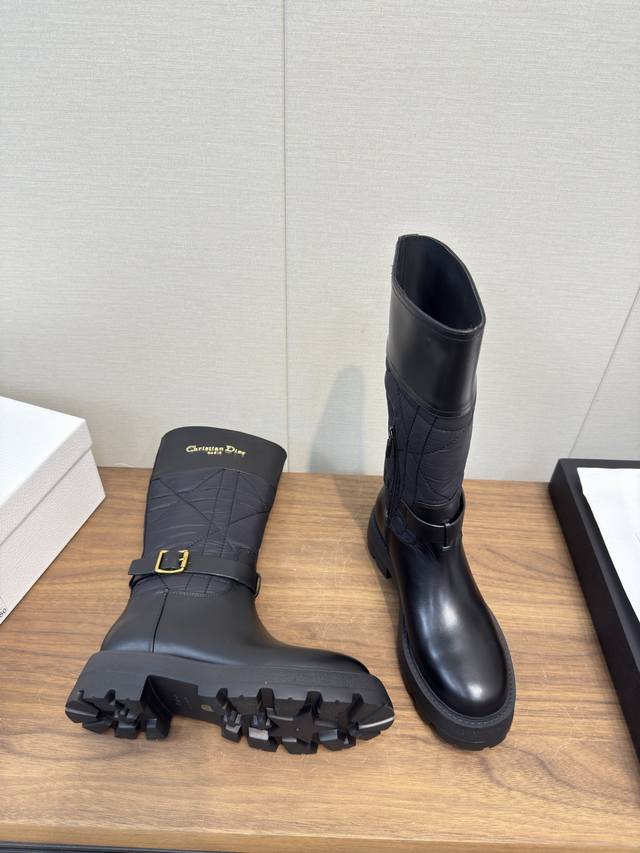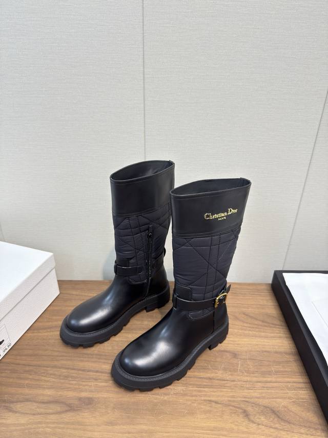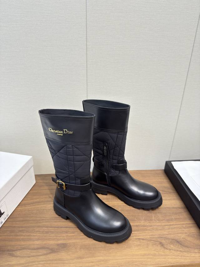 Dior 迪奥 Cd 24 秋冬最新高定海报款电绣拼色字母Logo圆头中筒女靴 明星同款低跟一脚蹬骑士军靴 原版开发 顶级高端版本