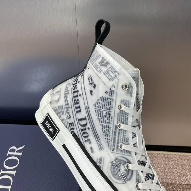 高帮 迪奥 2024春夏最新果冻色情侣款休闲鞋 Dior 印花字母logo圆头高帮系带平底帆布滑板鞋 明星同款电绣小蜜蜂老花拼色运动鞋 原版开发 顶级代购品质