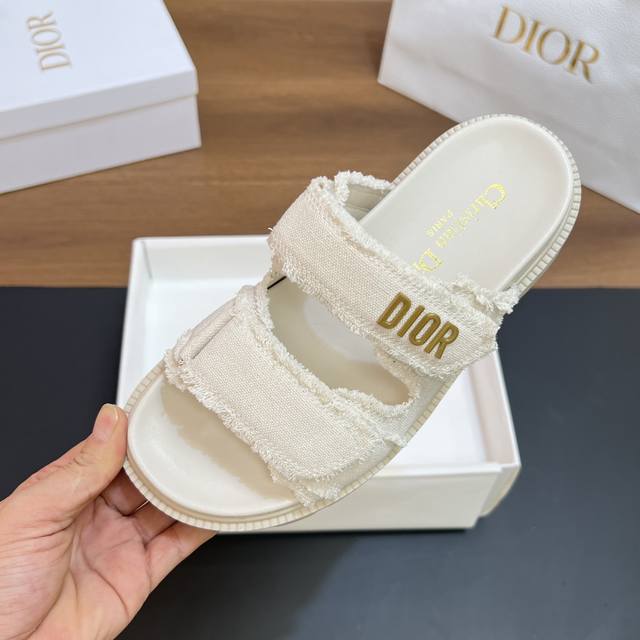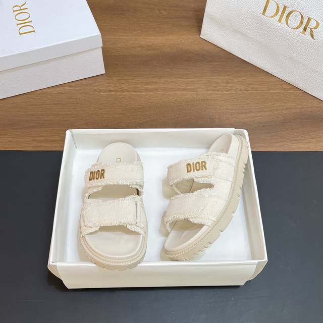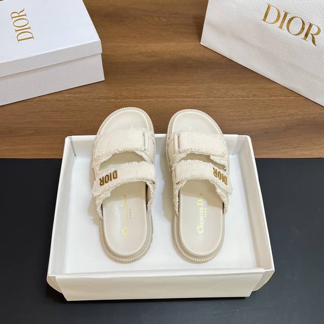最新电绣款三色 经典升级加2024新色系 Dior迪奥 经典魔术贴凉鞋拖鞋系列 原版复刻 高版本 超耐看超百搭款 上脚非常舒适 显瘦又显白 鞋面原版布面,原版D五金扣 ,原版Tpu大底 码数:35-39(40、41定做不退不换)