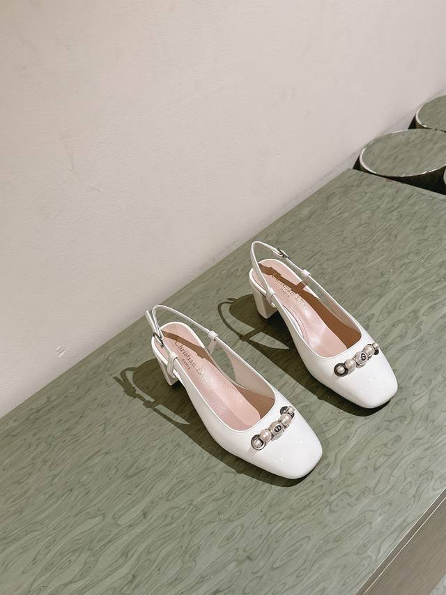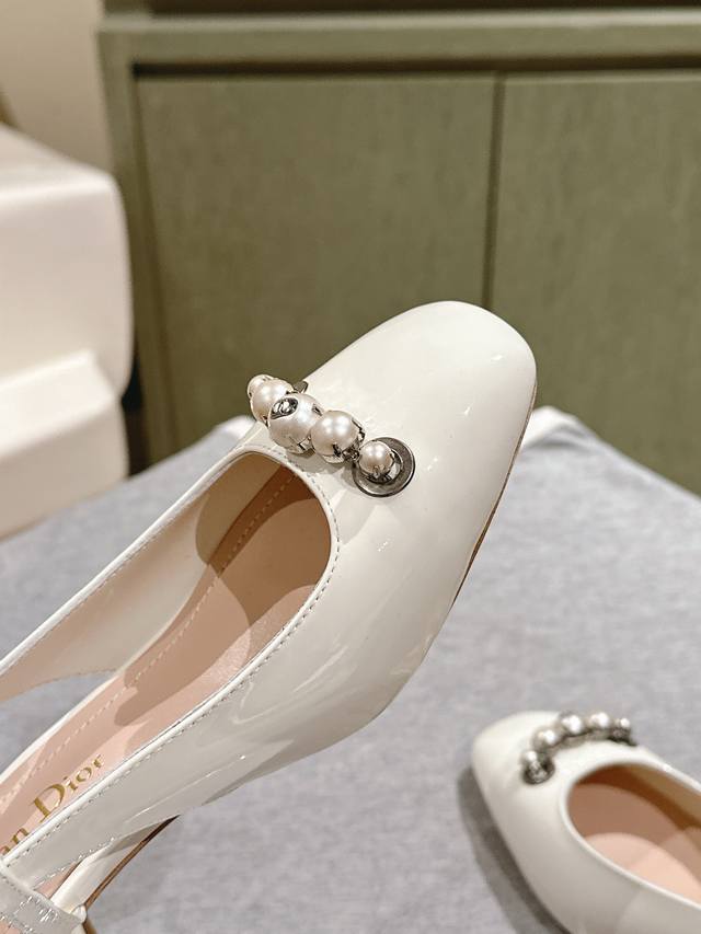 时尚优雅,饰以白色树脂珠饰和 Cd 标志。尖头设计与5公分粗跟相得益彰,可为本季的各式造型增添高雅气质材质完美还原,随意对比哦~内里小山羊皮,耐穿有质感。开模定制树脂珍珠,穿脱方便优雅又质感,小小的特别精致皮革鞋底饰以 Christian Dior 的幸运星符号,原版包装配套,代购级出品,细节安心