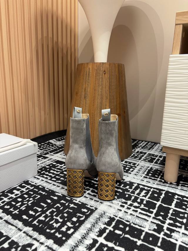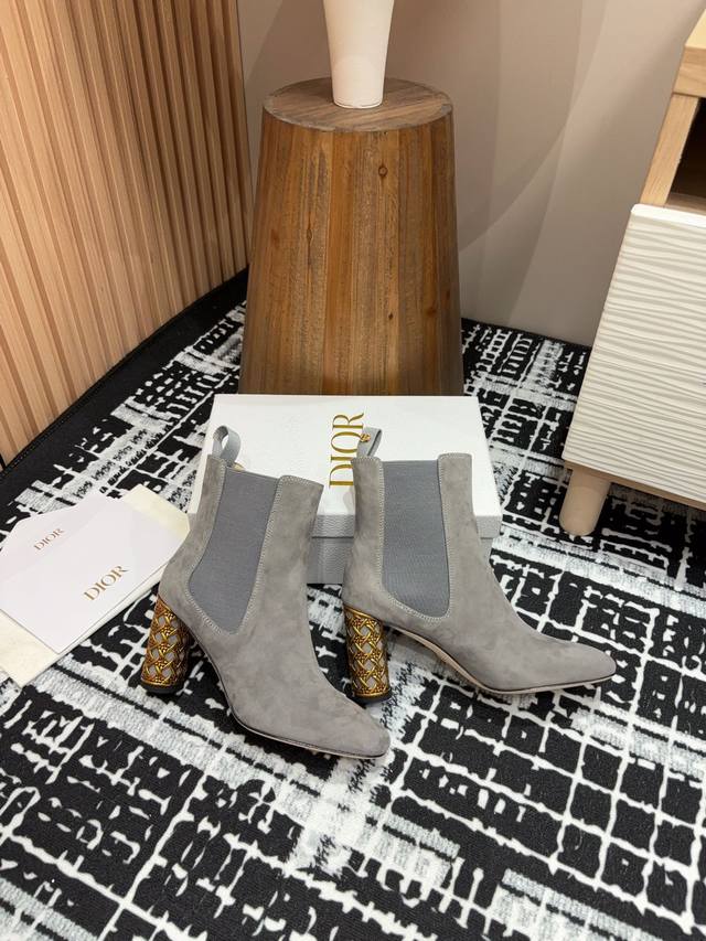 24Ss秋冬新款dior Icon圆跟及踝靴松紧粗跟短靴