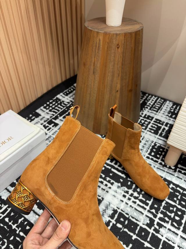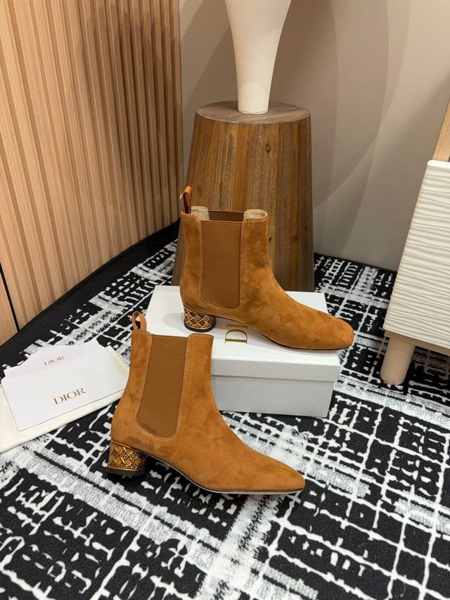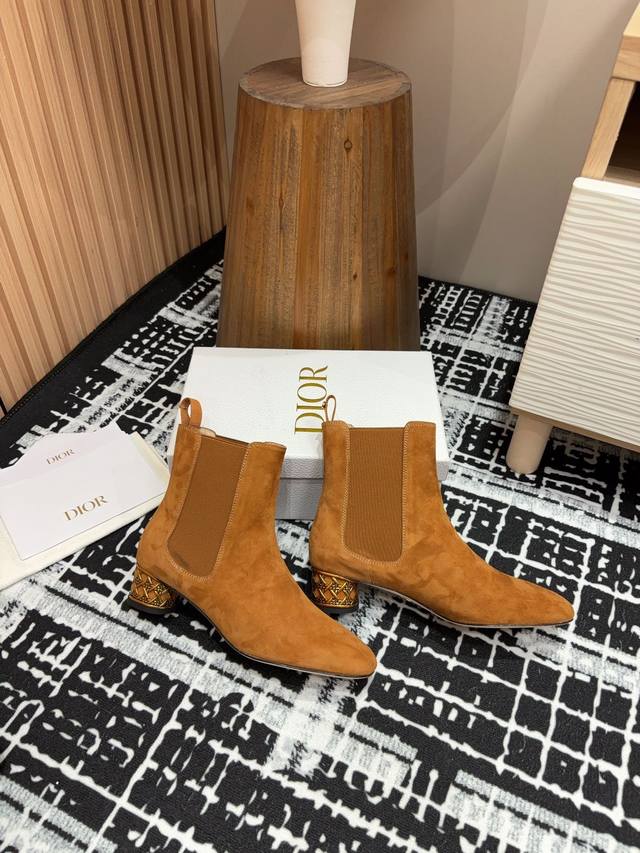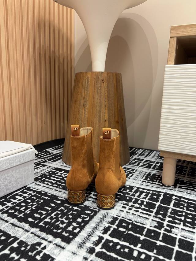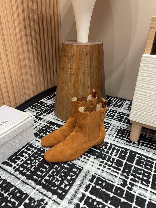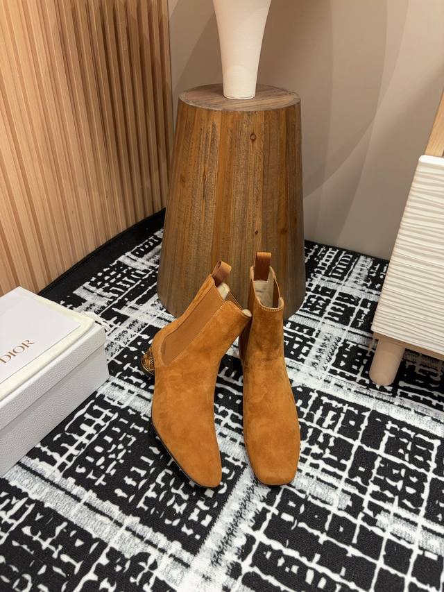 24Ss秋冬新款dior Icon圆跟及踝靴松紧粗跟短靴