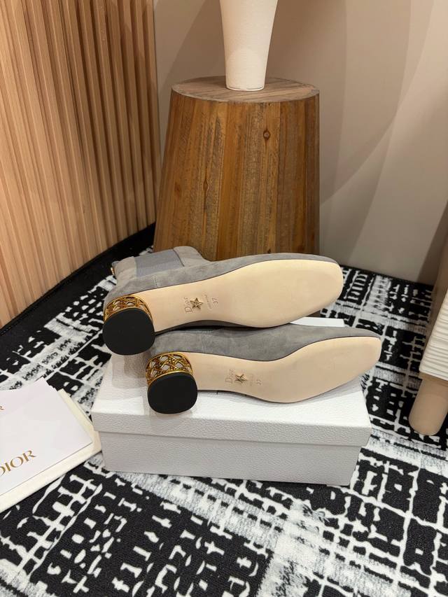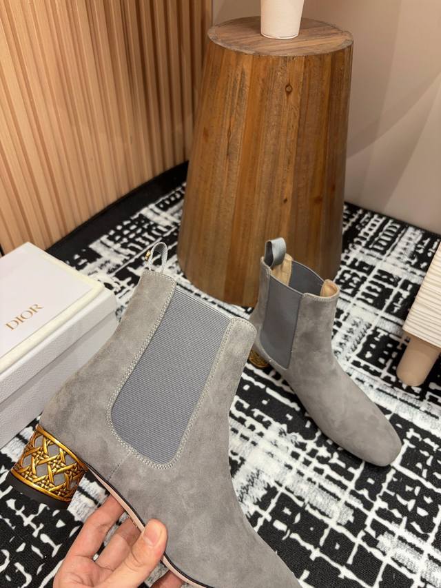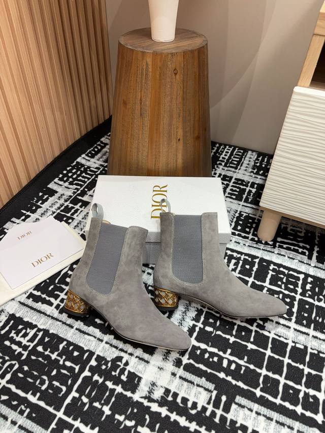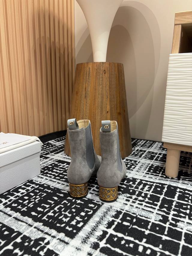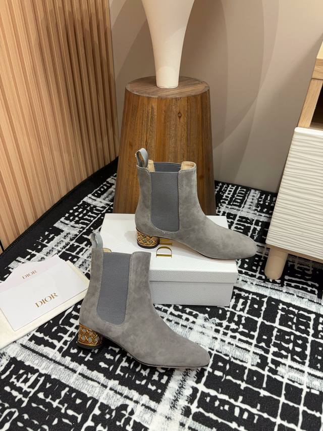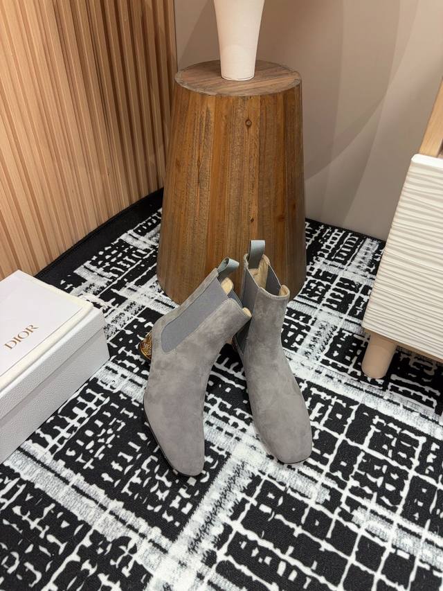 24Ss秋冬新款dior Icon圆跟及踝靴松紧粗跟短靴