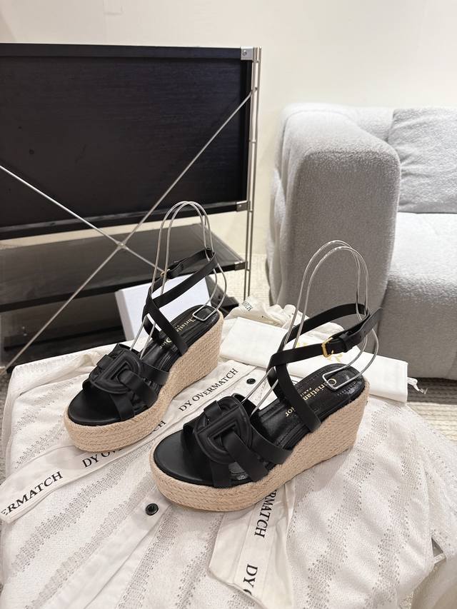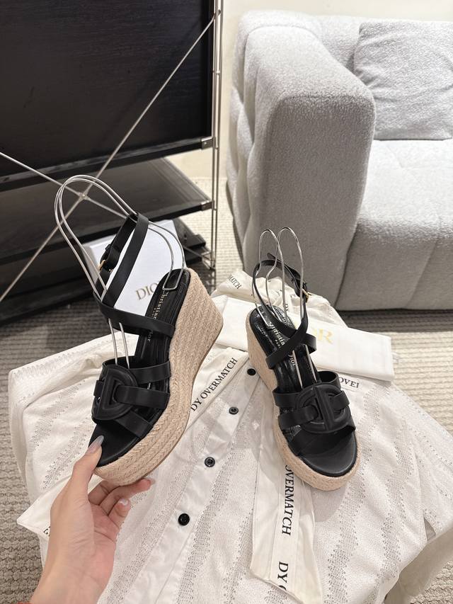 25Ss春夏新款Dior 迪奥Dway草编坡跟凉鞋镂空叠层Cd交叉猪鼻子绳底马鞍带防水台高跟凉鞋